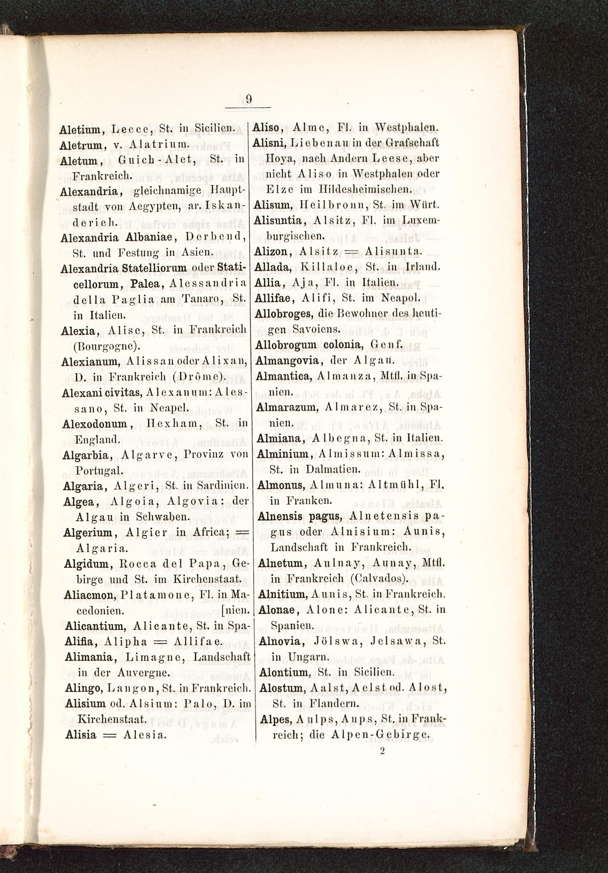 in der Auvergne .Alingo, Langon, St. in Frankreich .Alisium od. Alsium: 1' a 1 o, D. im