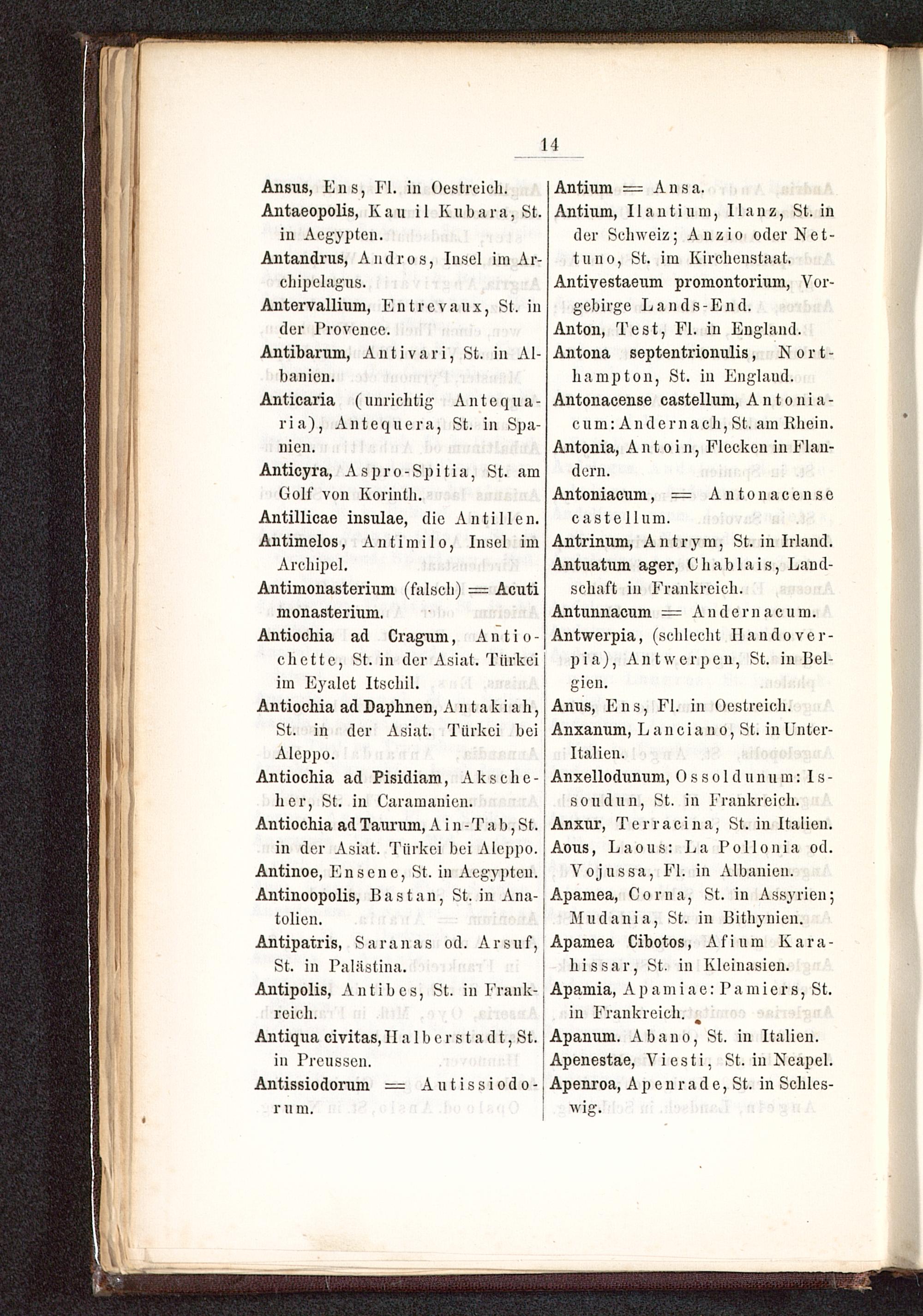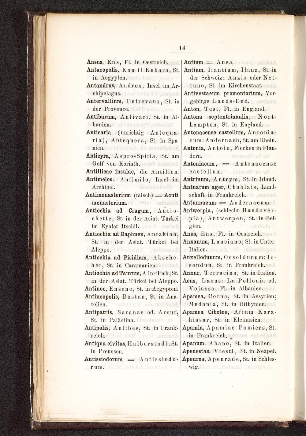 Antinm, Ilaiitium, Ilanz, St. infler Schweiz: Auzio oder Nct-tuii'i, Sl. im .Kirchenstaat.