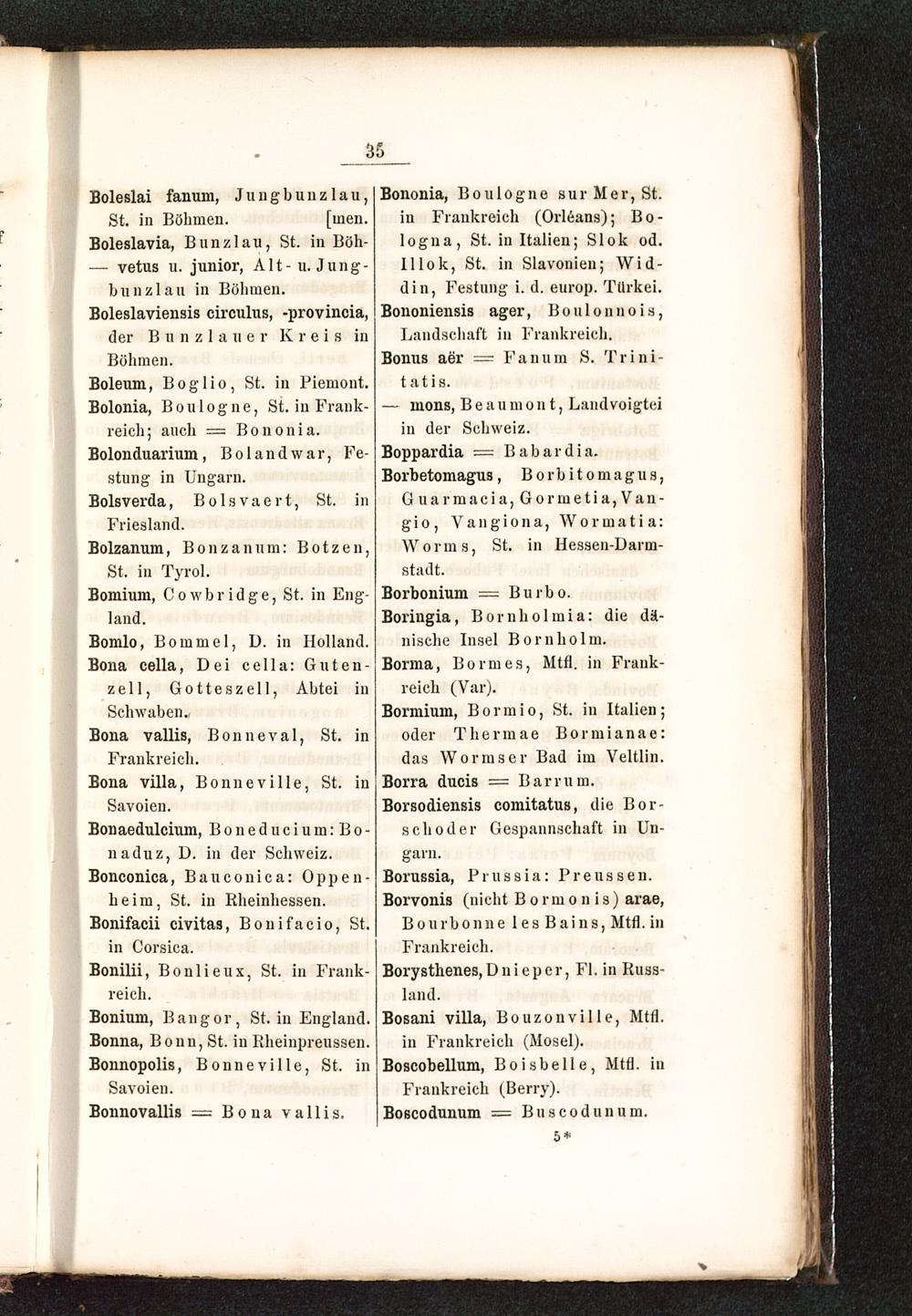 Bonium, Bangor, St. in England .Bonna, Bonn , St. in Kheinpreussen.Bonnopolis, Bonneville, St. in