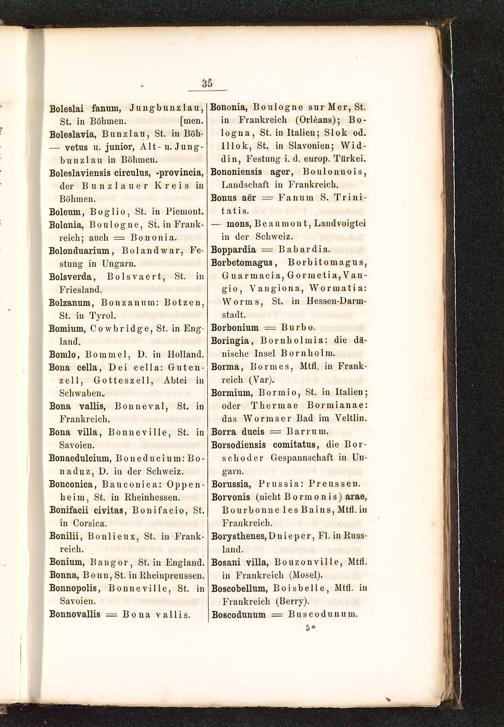 Bononia, Boulogne sur Mer , St.in Frankreich (Orl6ans); Bo-logna, St. in Italien ; Slok od.Illok, St. in Slavonien ; Wid-din, Festung i. d. europ. Türkei .