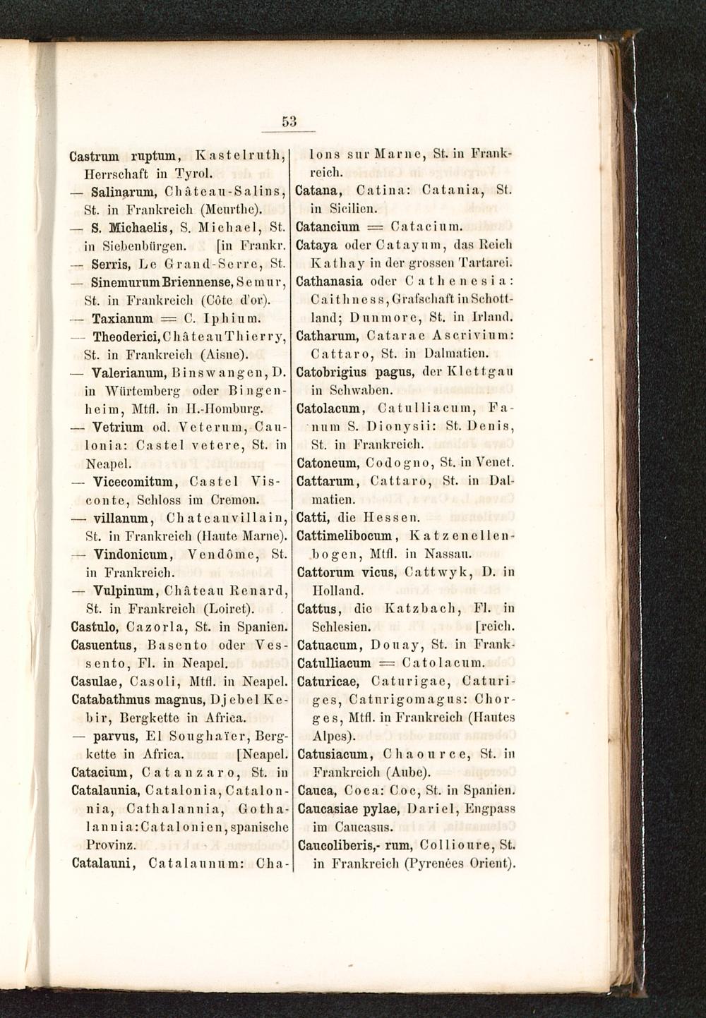 Catacium, C a t a n z a r o, St. inCatalaunia, C a t a 1 o n i a, C a t a 1 o n -nia, Cathalannia, Gotha -I a n n i a: Ga t a 1 o n i e n, spanischeProvinz.