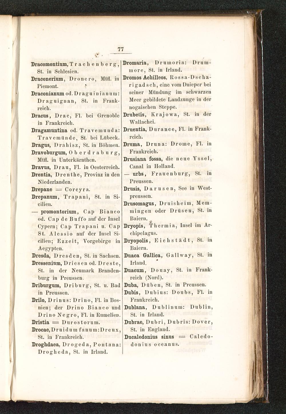 Travemünde, St. bei Lübeck .Dragus, Drähisz, St. in Böhmen .Dravoburgum, 0 b e r d r a b u r g,