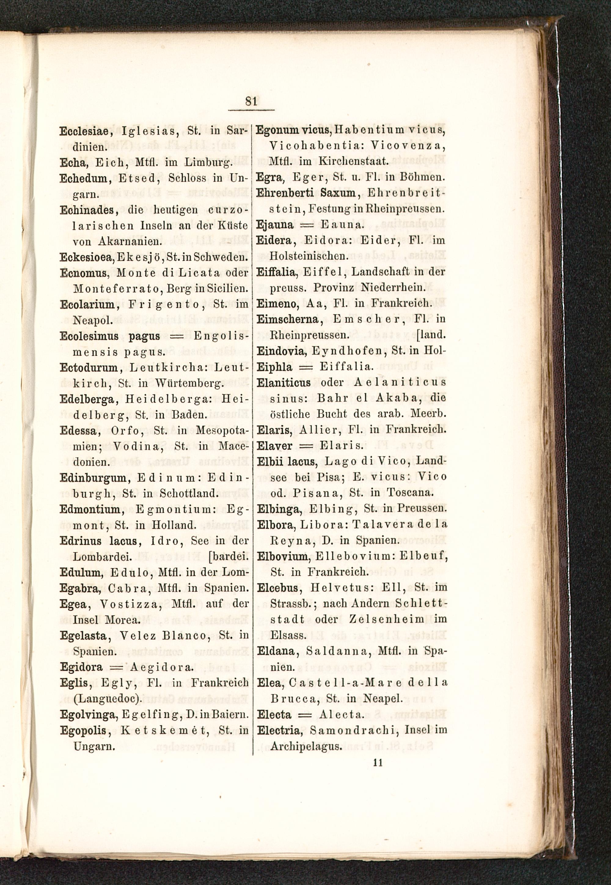 Egonum vicus, Hab entium vicus,Vicohabentia: Vicovenza,Mtfl. im Kirchenstaat .I Egra, Eger, St. u. Fl. in Böhmen ,i Ehrenberti Saxum, E h r e n b r e i t -stein, Festung in Rheinpreussen.