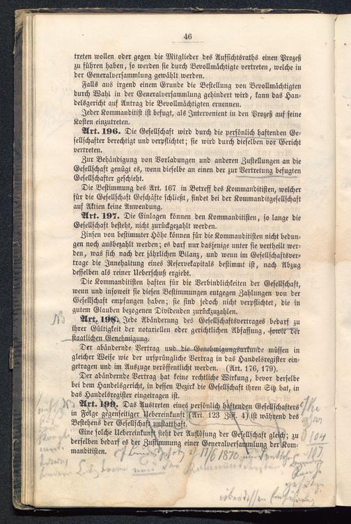 Art. 196. Die Gesellschaft wird durch die persönlich haftenden Ge-sellschafter berechtigt und verpflichtet; sie wird durch dieselben vor Gerichtvertreten.