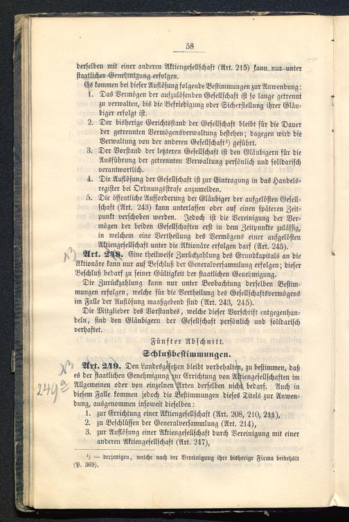 derselben mit einer anderen Aktiengesellschaft (Art. 215) kann nur. unterstaatlicher Genehmigung erfolgen.