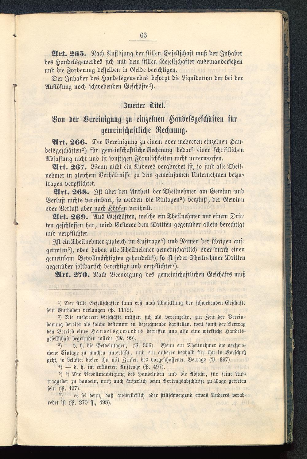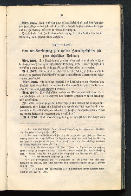 Art. 266. Die Vereinigung zu einem oder mehreren einzelnen Han-delsgeschäften^) für gemeinschaftliche Rechnung bedarf einer schriftlichenAbfassung nicht und ist sonstigen Förmlichkeiten nicht unterworfen.