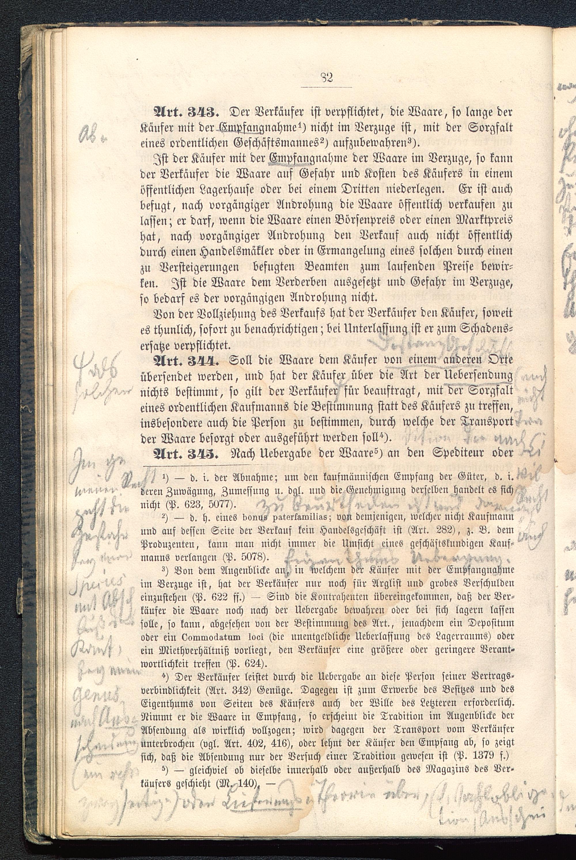 Art. 343. Der Verkäufer ist verpflichtet, die Waare, so lange derKäufer mit der-Empfang»ahme nicht im Verzüge ist, mit der Sorgfalteines ordentlichen Geschäftsmannes?) aufzubewahren?).