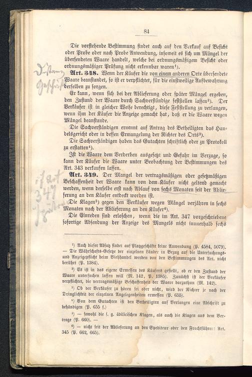 ) Art. 348. Wenn der Käufer die von einem anderen Orte übersendeteWaare beanstandet, so ist er verpflichtet, für die einstweilige Aufbewahrungderselben zu sorgen.