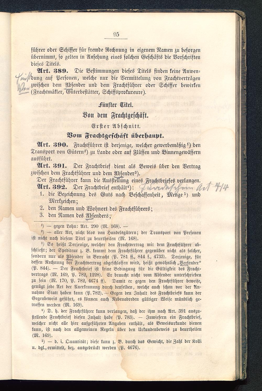Art. 399. Frachtführer ist derjenige, welcher gewerbemäßig denTransport von Gütern?) zu Lande oder auf Flüssen und Binnengewässernausführt.