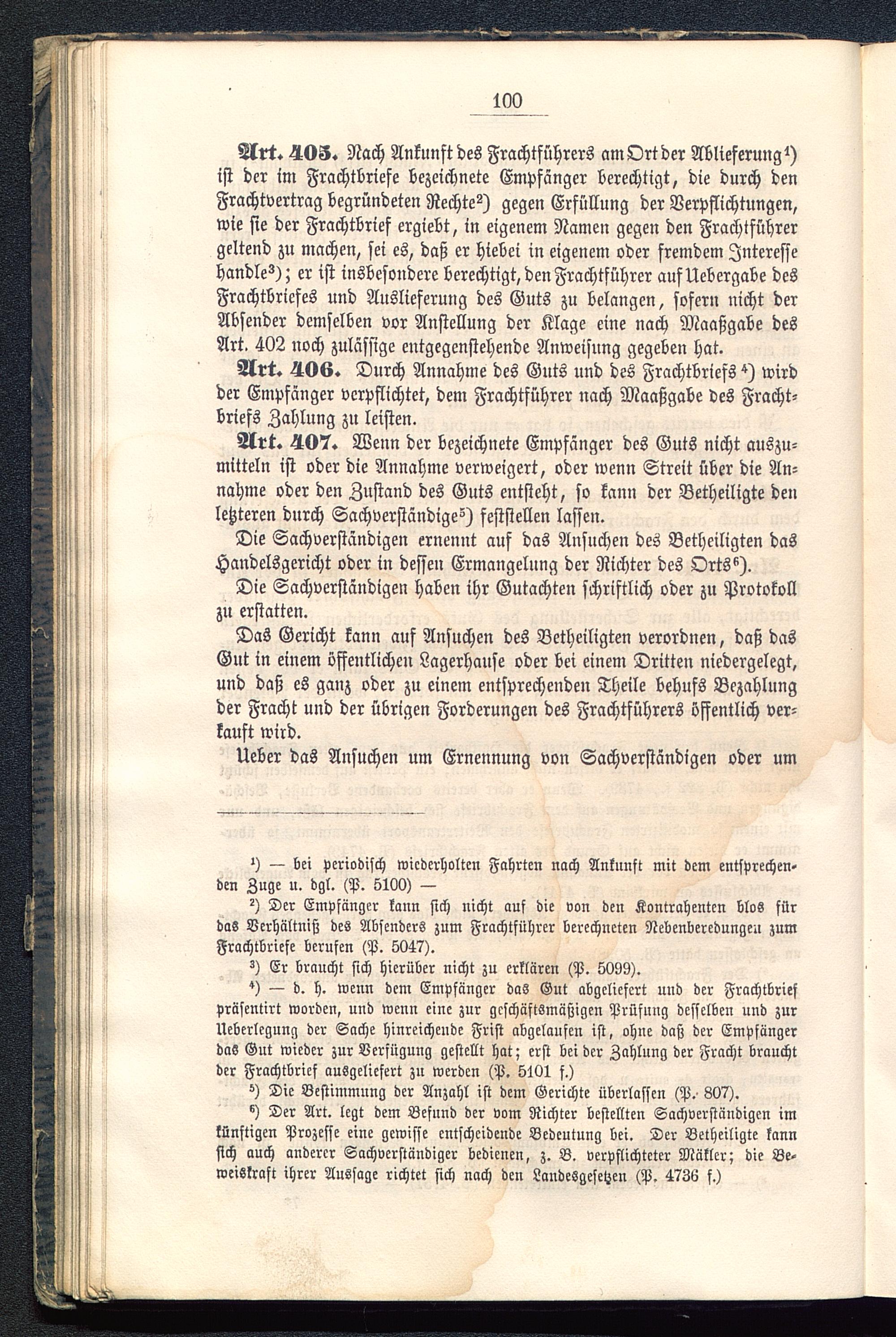 Art. 406. Durch Annahme des Guts und des Frachtbriefs ^) wirdder Empfänger verpflichtet, dem Frachtführer nach Maaßgabe des Fracht-briefs Zahlung zu leisten.