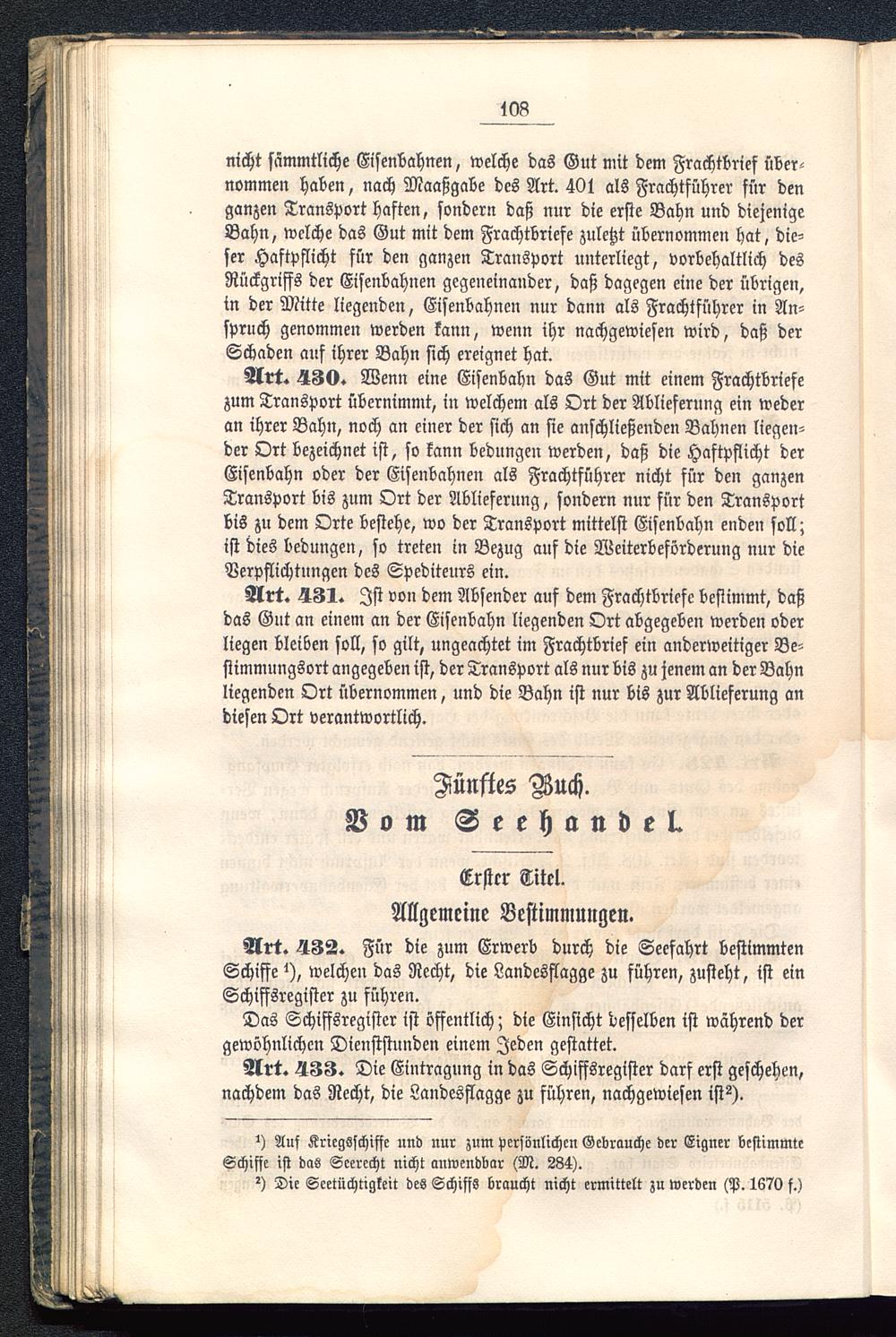 Art. 432. Für die zum Erwerb durch die Seefahrt bestimmtenSchiffe i), welchen das Recht, die Landesflagge zu führen, zusteht, ist einSchiffsregister zu führen.