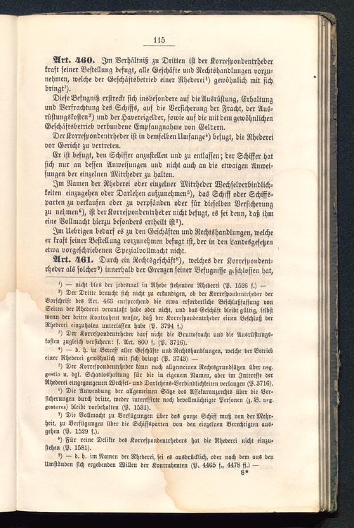 Art. 461. Durch ein Rechtsgeschäft«), welches der Korrespondent-rheder als solcher«) innerhalb der Grenzen seiner Befugnisse geschlossen hat,