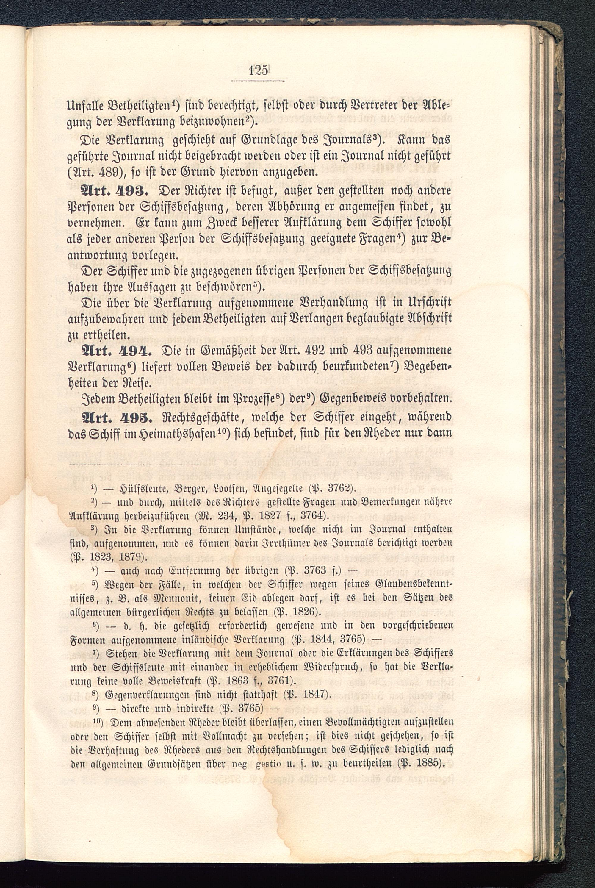 Art. 494. Die in Gemäßheit der Art. 492 und 493 aufgenommeneVerklarung?) liefert vollen Beweis der dadurch beurkundeten') Begeben-heiten der Reise.