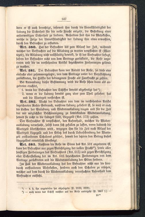 Art. 383. Nachdem die Reise im Sinne des Art. 581 angetreten ist,kann der Befrachter nur gegen Berichtigung der vollen Fracht?), sowie allersonstigen Forderungen des Verfrachters (Art. 615) und gegen Berichtigungoder Sicherstellung der im Art. 616 bezeichneten Forderungen von demVertrage zurücktreten und die Wiederausladung der Güter fordern.