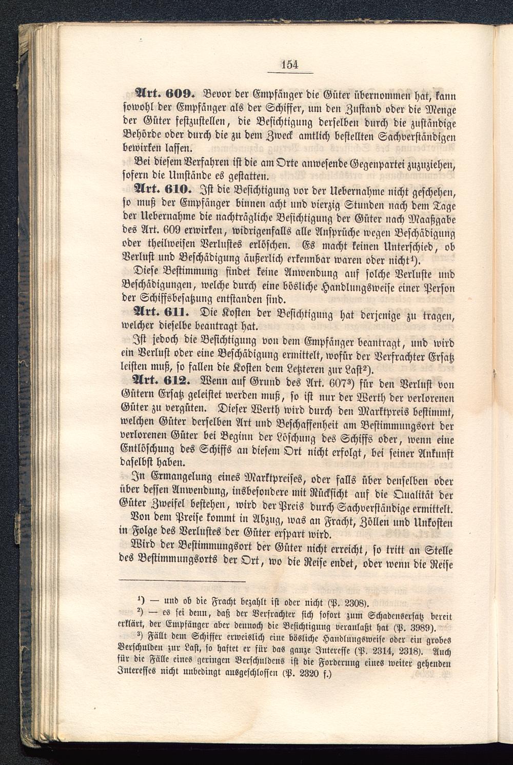 Art. 612. Wenn auf Grund des Art. 607?) für den Verlust vonGütern Ersatz geleistet werden muß, so ist nur der Werth der verlorenenGüter zu vergüten. Dieser Werth wird durch den Marktpreis bestimmt,welchen Güter derselben Art und Beschaffenheit am Bestimmungsort derverlorenen Güter bei Beginn der Löschung des Schiffs oder, wenn eineEntlöschung des Schiffs an diesem Ort nicht erfolgt, bei seiner Ankunftdaselbst haben.