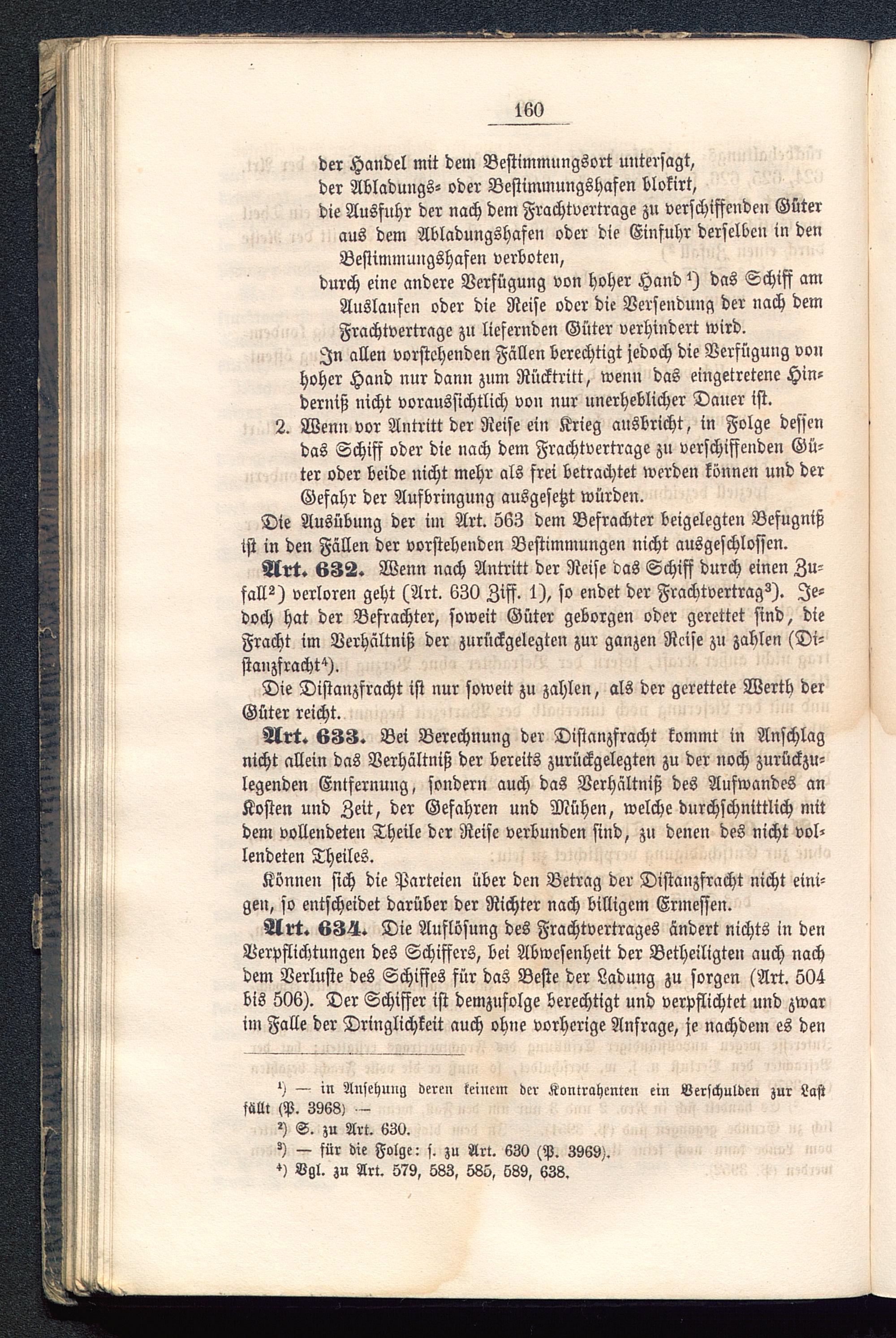 Art. 633. Bei Berechnung der Distanzfracht kommt in Anschlagnicht allein das Verhältniß der bereits zurückgelegten zu der noch zurückzu-legenden Entfernung, sondern auch das Verhältniß des Aufwandes anKosten und Zeit, der Gefahren und Mühen, welche durchschnittlich mitdem vollendeten Theile der Reise verbunden sind, zu denen des nicht vol-lendeten Theiles.