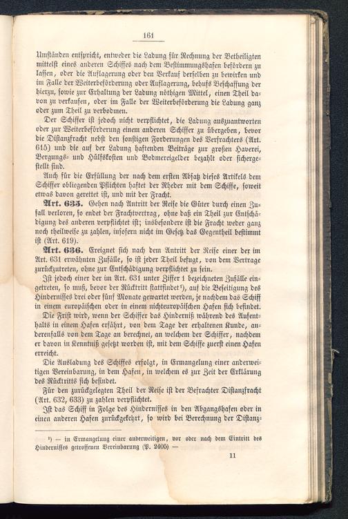 Ist jedoch einer der im Art. 631 unter Ziffer 1 bezeichneten Zufälle ein-getreten, so muß, bevor der Rücktritt stattfindet^), auf die Beseitigung desHindernisses drei oder fünf Monate gewartet werden, je nachdem das Schiffin einem europäischen oder in einem nichteuropäischen Hafen sich befindet.