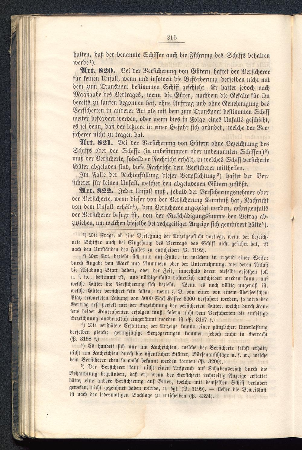 5) Der Versicherer kann nicht einen Anspruch auf Schadensersatz durch dieBehauptung begründen, daß er, wenn der Versicherte rechtzeitig Anzeige erstattethätte, eine andere Versicherung auf Güter, welche mit demselben Schiff verladengewesen, nicht gezeichnet haben würde, u. dgl. (P. 3199). — Ueber die Beweislastist »ach der jedesmaligen Sachlage zu entscheiden (P. 1324).