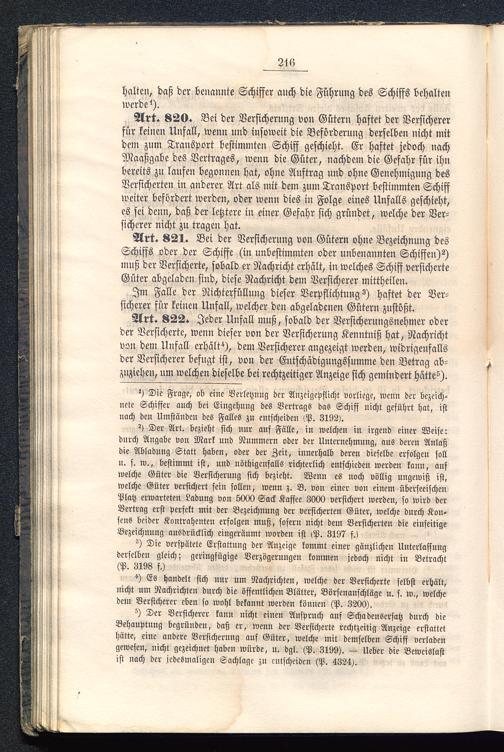 Art. 821. Bei der Versicherung von Gütern ohne Bezeichnung desSchiffs oder der Schiffe (in unbestimmten oder unbenannten Schiffen)?)muß der Versicherte, sobald er Nachricht erhält, in welches Schiff versicherteGüter abgeladen sind, diese Nachricht dem Versicherer mittheilen.