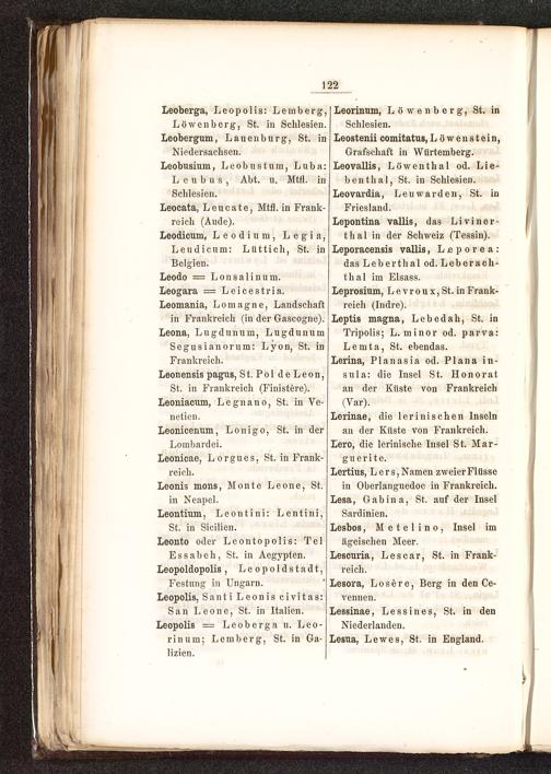 Schlesien .Leocata, Leucate, Mtfl. in Frank-reich (Aude ).Leodicum, L e o d i ri in , L e g i a,