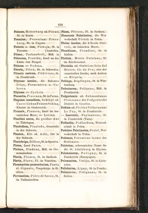 St. in Krain.Pisonium, Posonium: Press-burg, St. in Ungarn .Pistoria u. -ium, Pistoja , St. in