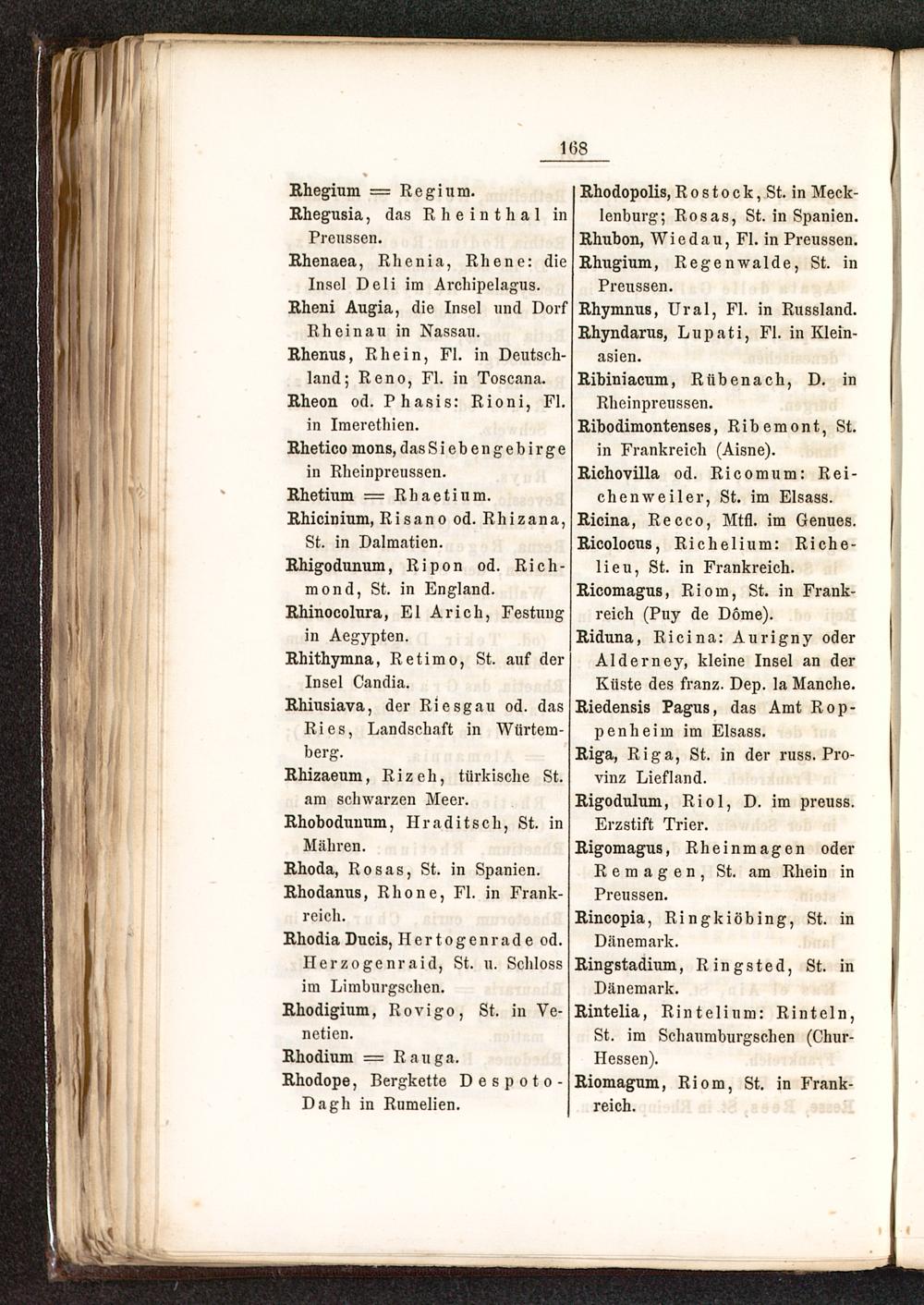 Rhoda, Rosas, St. in Spanien .Rhodanus, Rhone, Fl. in Frank-reich .