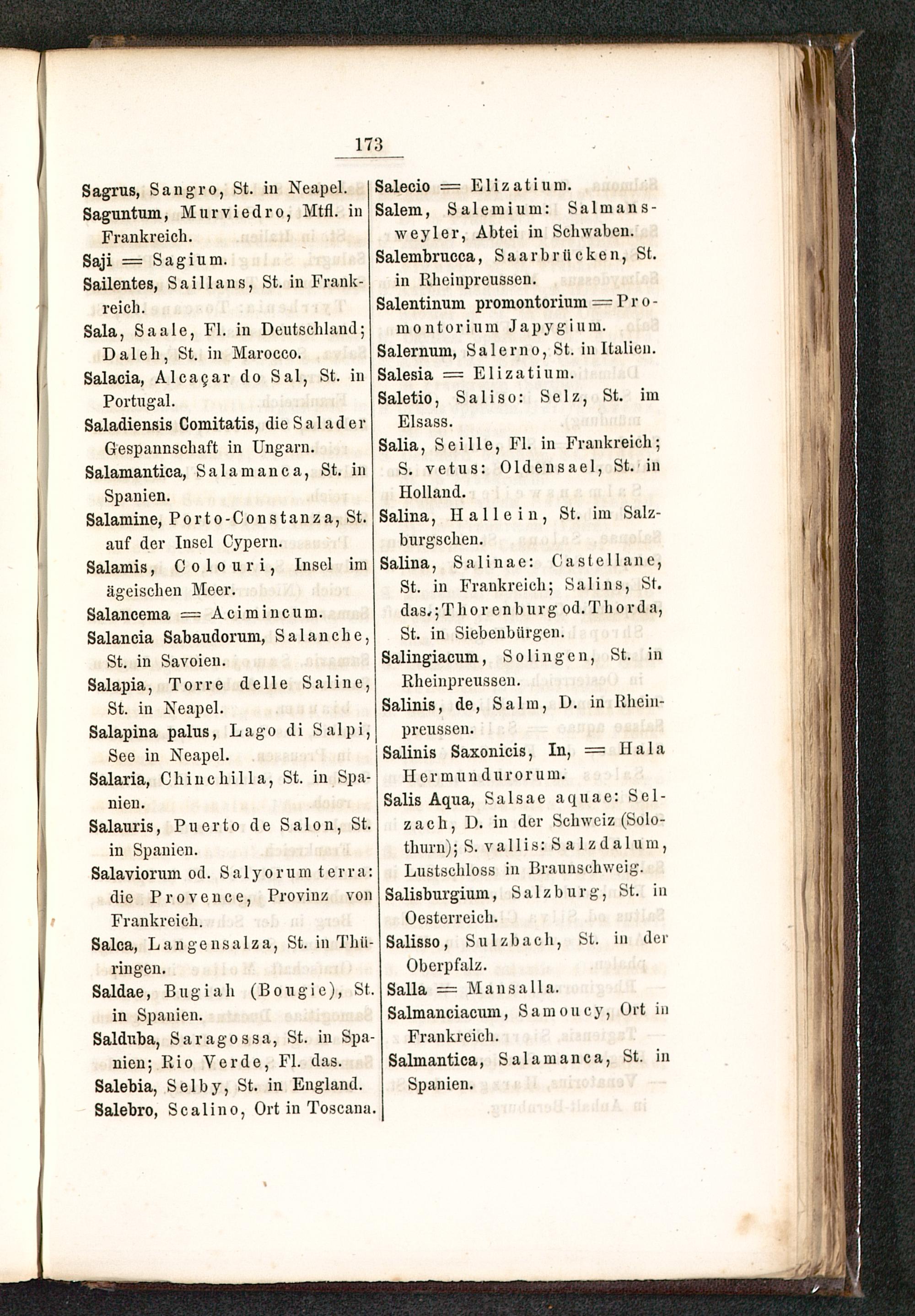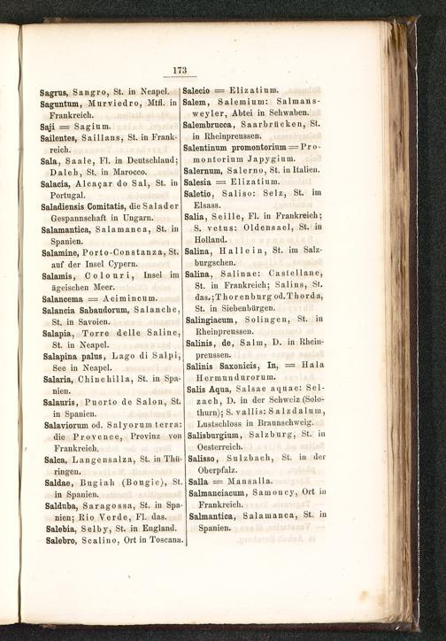 Salis Aqua, Salsae aquae: Sel-zach, D. in der Schweiz (Solo-thurn); S. v a 11 i s: S a 1 z d a 1 u m,Lustschloss in Braunschweig .