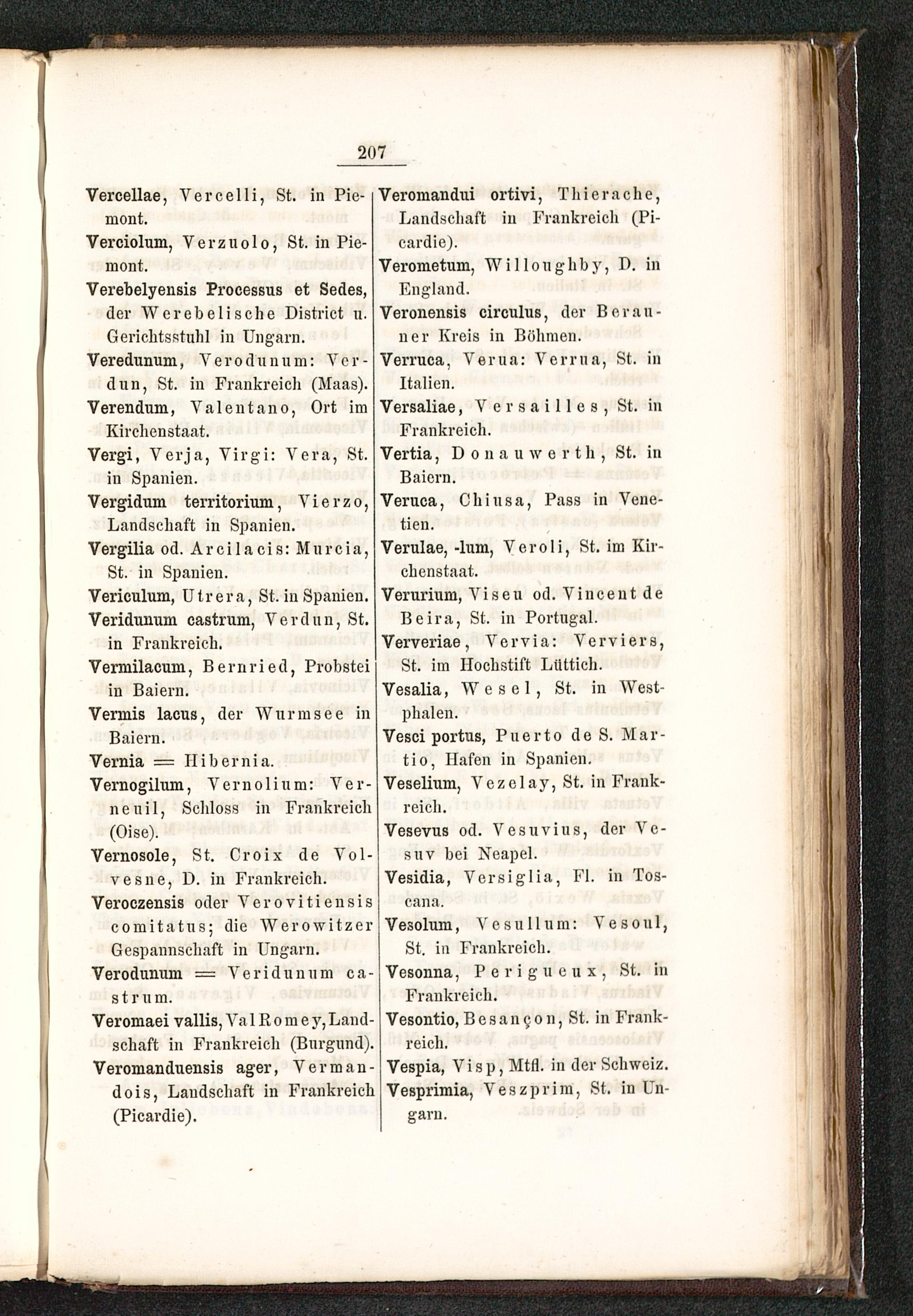 Vespia, Visp,Mtfl. in der Schweiz .Vesprimia, Veszprim, St. in Un-garn .