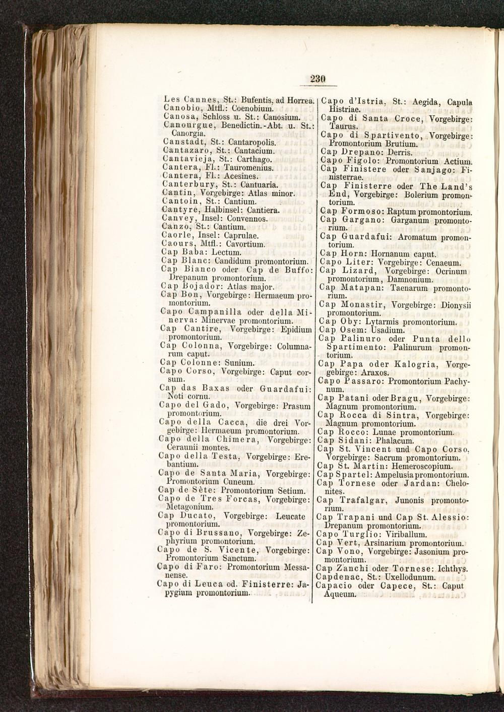 Promontorium Brutium.Cap Urepano: Derris.Capo Figolo: Promontorium Actium.Cap Finistere oder Sanjago: Fi-