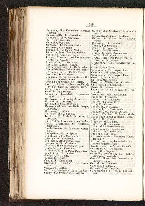 nova od. Saxonica, Tanfanae lucus.Corvo, Insel: Corvi insula.Coscile, Fl.: Sybaris .Cosentin, Landschaft: Constantinus