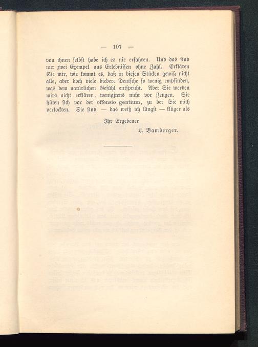 von ihnen selbst habe ich es nie erfahren. Und das sindnur zwei Exempel aus Erlebnissen ohne Zahl. ErklärenSie mir, wie kommt es, daß in diesen Stücken gewiß nichtalle, aber doch viele biedere Deutsche so wenig empfinden,was dem natürlichen Gefühl entspricht. Aber Sie werdenmirs nicht erklären, wenigstens nicht vor Zeugen. Siehüten sich vor der oüsusio Zsutinro., zu der Sie michverlockten. Sie sind, — das weiß ich längst — klüger als