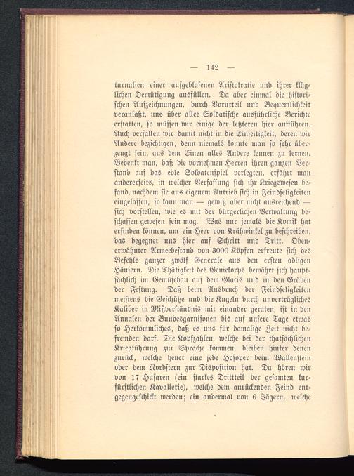 turnalicn einer aufgeblasenen Aristokratie und ihrer kläg-lichen Demütigung ausfüllen. Da aber einmal die histori-schen Aufzeichnungen, durch Vorurteil und Bequemlichkeitveranlaßt, uns über alles Soldatische ausführliche Berichteerstatten, so müssen wir einige der letzteren hier aufführen.Auch verfallen wir damit nicht in die Einseitigkeit, deren wirAndere bezichtigen, denn niemals konnte man so sehr über-zeugt sein, aus dem Einen alles Andere kennen zu lernen.Bedenkt man, daß die vornehmen Herren ihren ganzen Ver-stand auf das edle Soldatenspiel verlegten, erfährt manandererseits, in welcher Verfassung sich ihr Kriegswesen be-fand, nachdem sie aus eigenem Antrieb sich in Feindseligkeiteneingelassen, so kann man — gewiß aber nicht ausreichend —sich vorstellen, wie es mit der bürgerlichen Verwaltung be-schaffen gewesen sein mag. Was nur jemals die Komik haterfinden können, um ein Heer von Krähwinkel zu beschreiben,das begegnet uns hier auf Schritt und Tritt. Oben-erwähnter Armeebestand von 3000 Köpfen erfreute sich desBefehls ganzer zwölf Generale aus den ersten adligenHäusern. Die Thätigkeit des Geniekorps bewährt sich haupt-sächlich im Gemüsebau auf dem Glacis und in den Gräbender Festung. Daß beim Ausbruch der Feindseligkeitenmeistens die Geschütze und die Kugeln durch unverträglichesKaliber in Mißverständnis mit einander geraten, ist in denAnnalen der Bundesgarnisonen bis auf unsere Tage etwasso Herkömmliches, daß es uns für damalige Zeit nicht be-fremden darf. Die Kopfzahlen, welche bei der thatsächlichenKriegführung zur Sprache kommen, bleiben hinter denenzurück, welche Heuer eine jede Hofoper beim Wallensteinoder dem Nordstern zur Disposition hat. Da hören wirvon 17 Husaren (ein starkes Drittteil der gesamten kur-fürstlichen Kavallerie), welche dem anrückenden Feind ent-gegengeschickt werden; ein andermal von 6 Jägern, welche