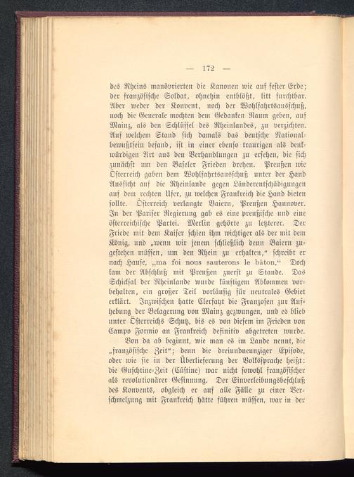 Von da ab beginnt, wie man es im Lande nennt, die„französische Zeit"; denn die dreiundneunziger Episode,oder wie sie in der Überlieferung der Volkssprache heißt:die Guschtine-Zeit (Cüstine) war nicht sowohl französischerals revolutionärer Gesinnung. Der Einverleibungsbeschlußdes Konvents, obgleich er auf alle Fälle zu einer Ver-schmelzung mit Frankreich hätte führen müssen, war in der