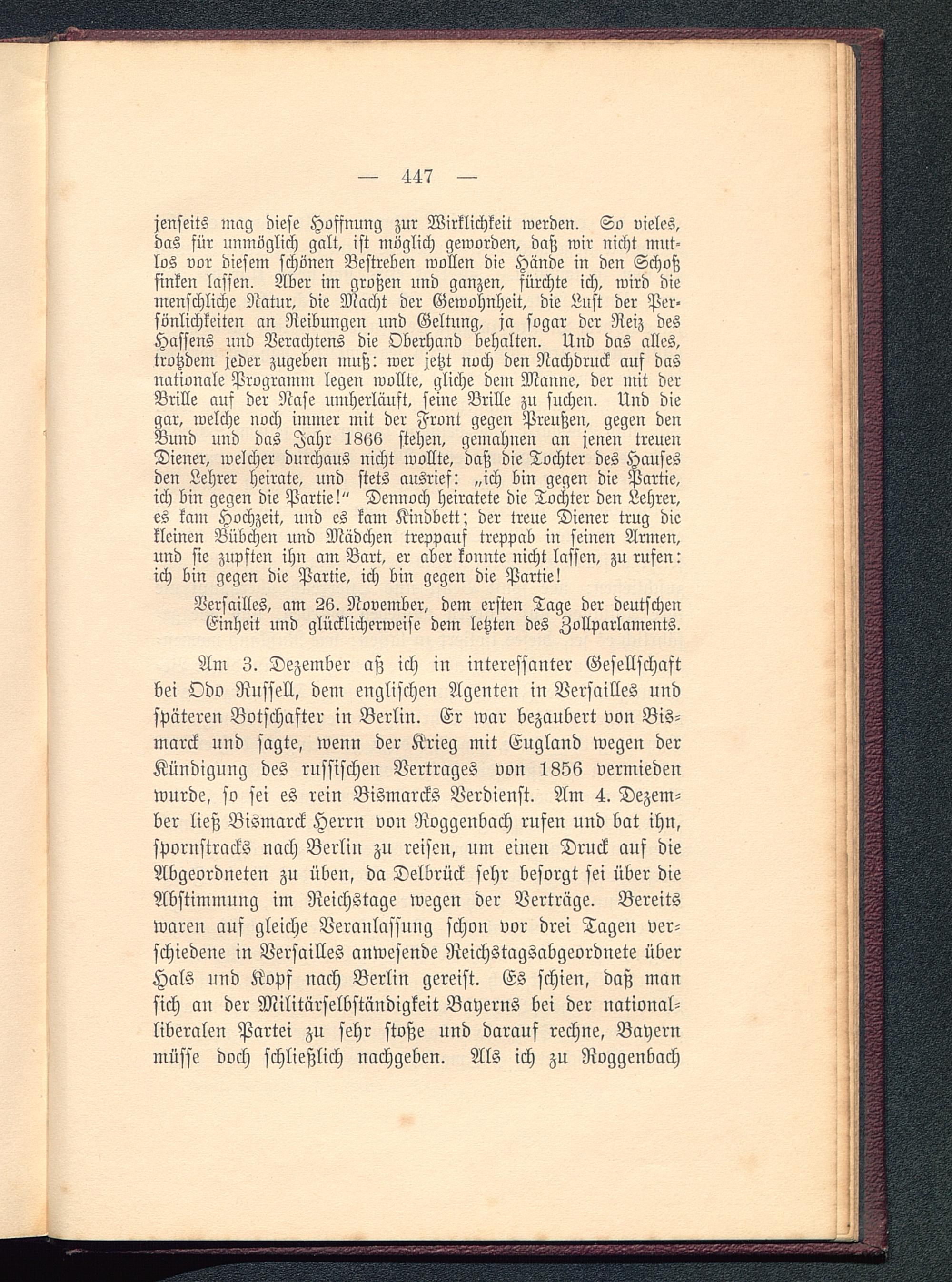 Versailles , am 26. November, dem ersten Tage der deutschenEinheit und glücklicherweise dem letzten des Zollparlaments.