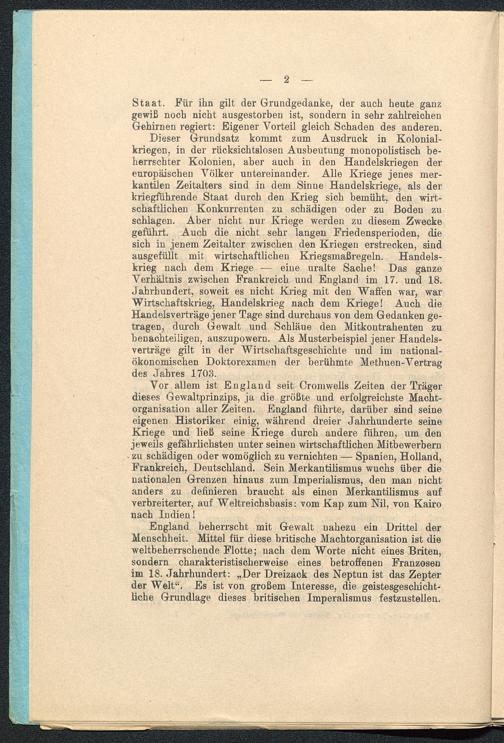 Staat. Für ihn gilt der Grundgedanke, der auch heute ganzgewiß noch nicht ausgestorben ist, sondern in sehr zahlreichenGehirnen regiert: Eigener Vorteil gleich Schaden des anderen.