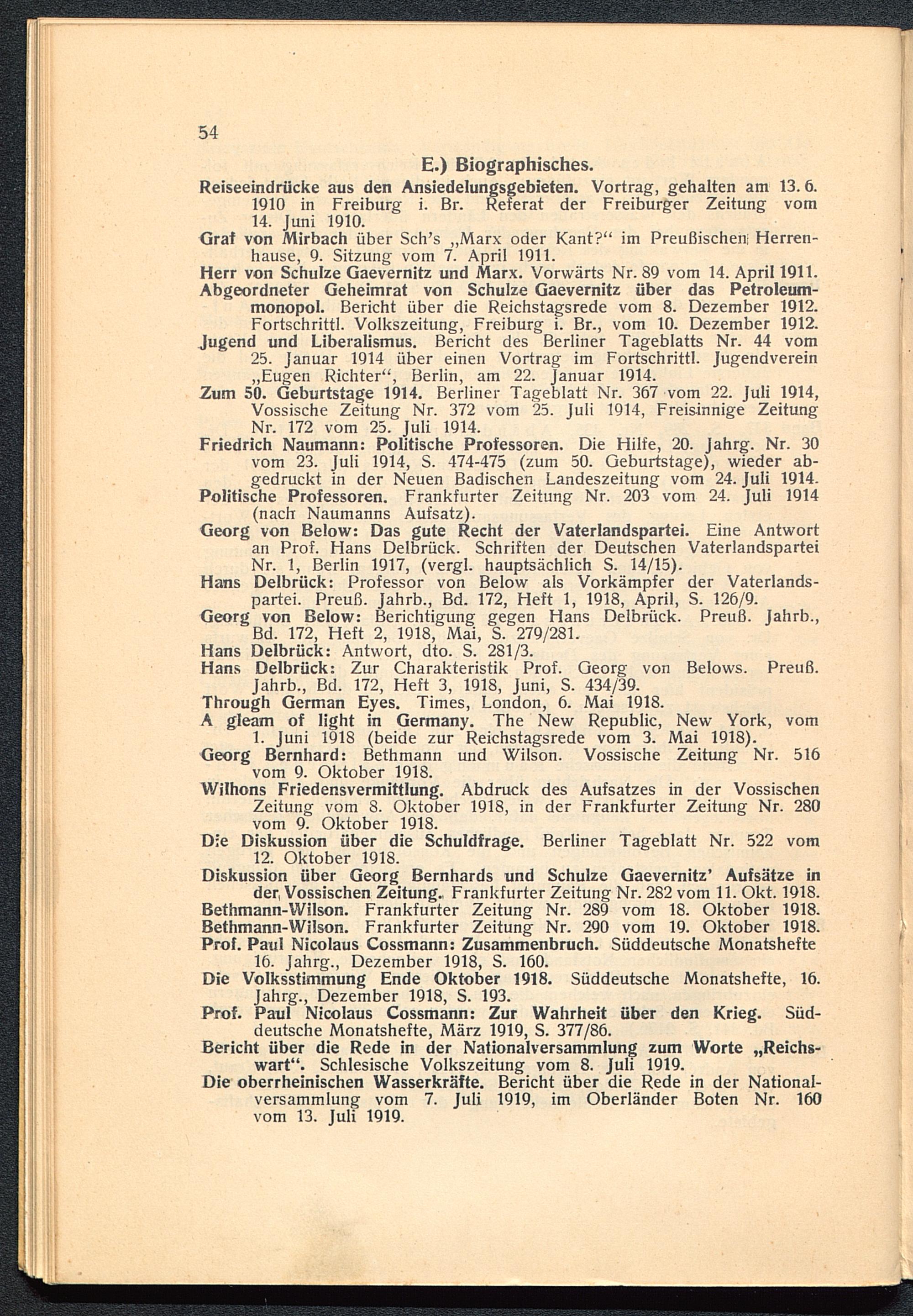 Diskussion über Georg Bernhards und Schulze Gaevernitz' Aufsätze inder, Vossischen Zeitung., Frankfurter Zeitung Nr. 282 vom 11. Okt. 1918.