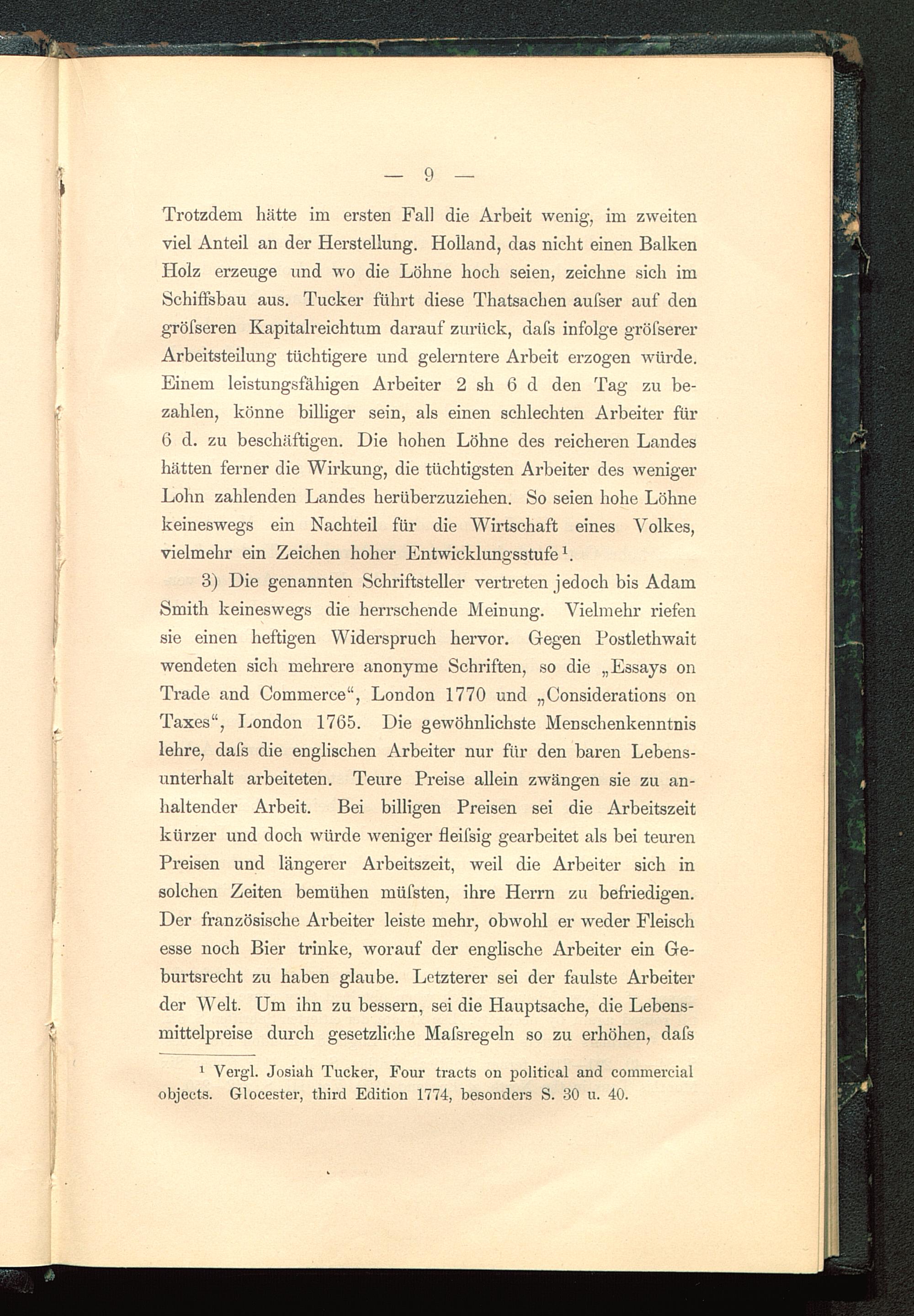 1 Vergl. Josiah Tucker, Four tracts on political and commercialobjects. Glocester, third Edition 1774, besonders S. 30 u. 40.