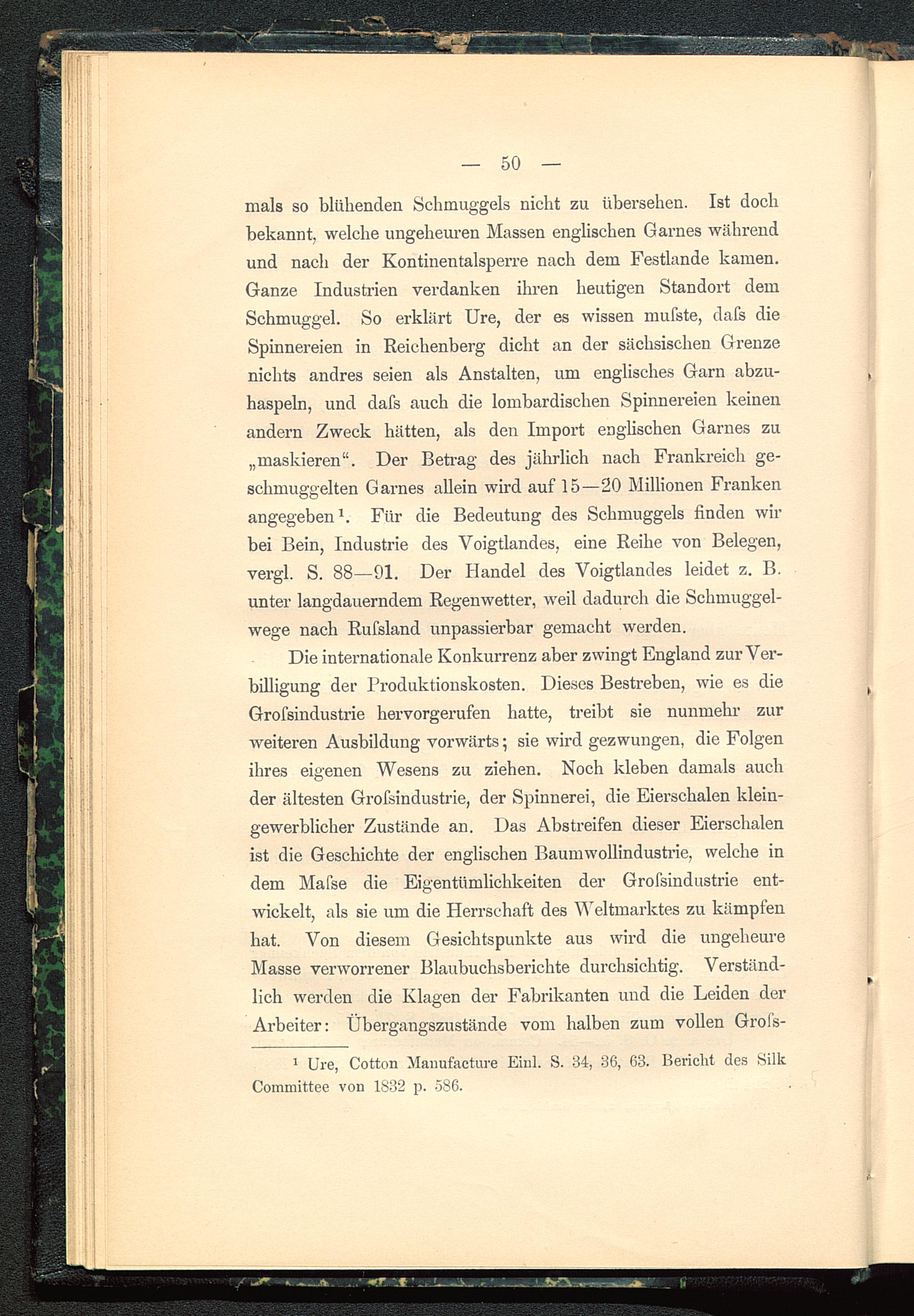1 Ure, Cotton Manufacture Einl. S. 34, 36, 63. Bericht des SilkCommittee von 1832 p. 586.