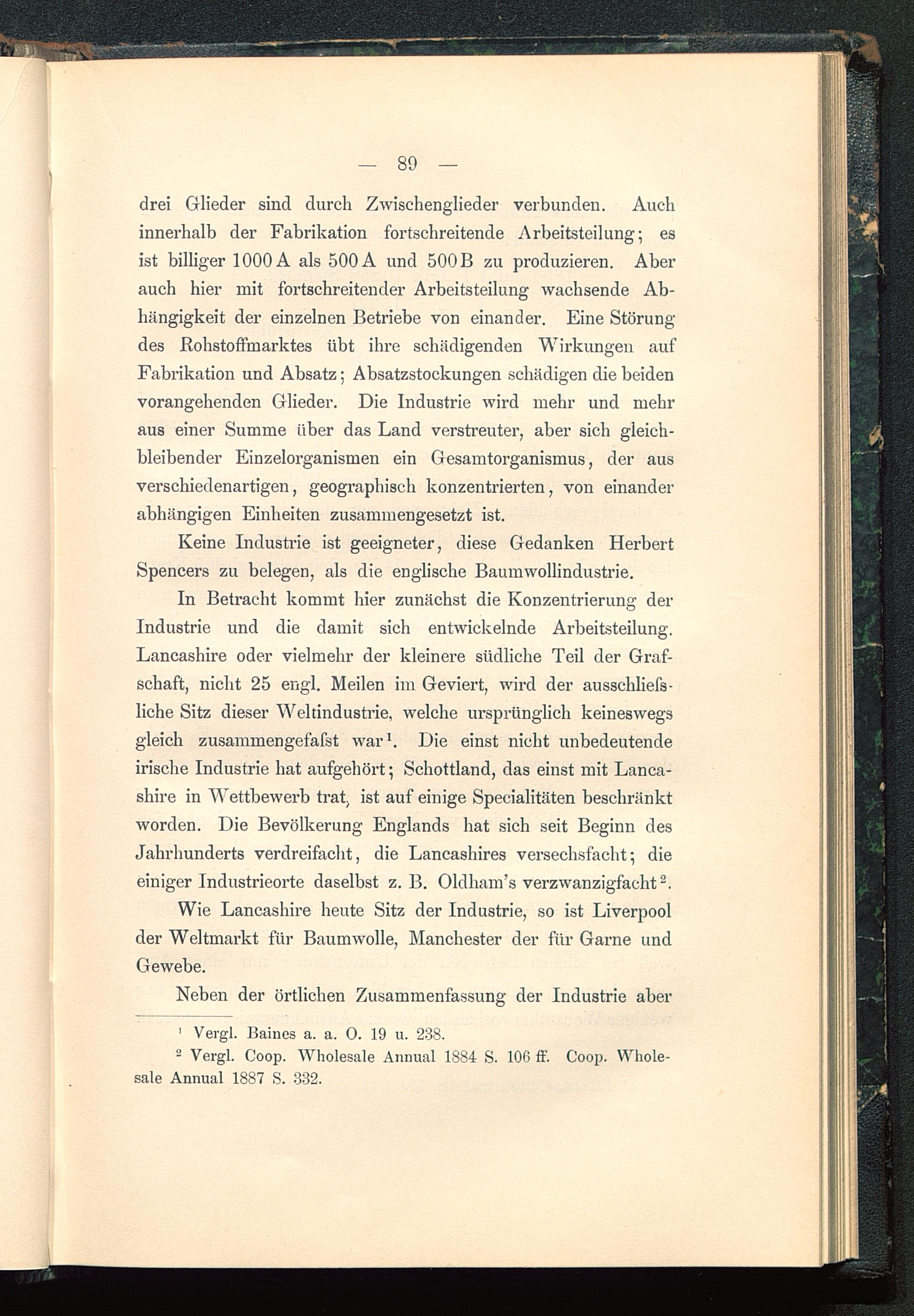 Keine Industrie ist geeigneter, diese Gedanken HerbertSpencers zu belegen, als die englische Baumwollindustrie.