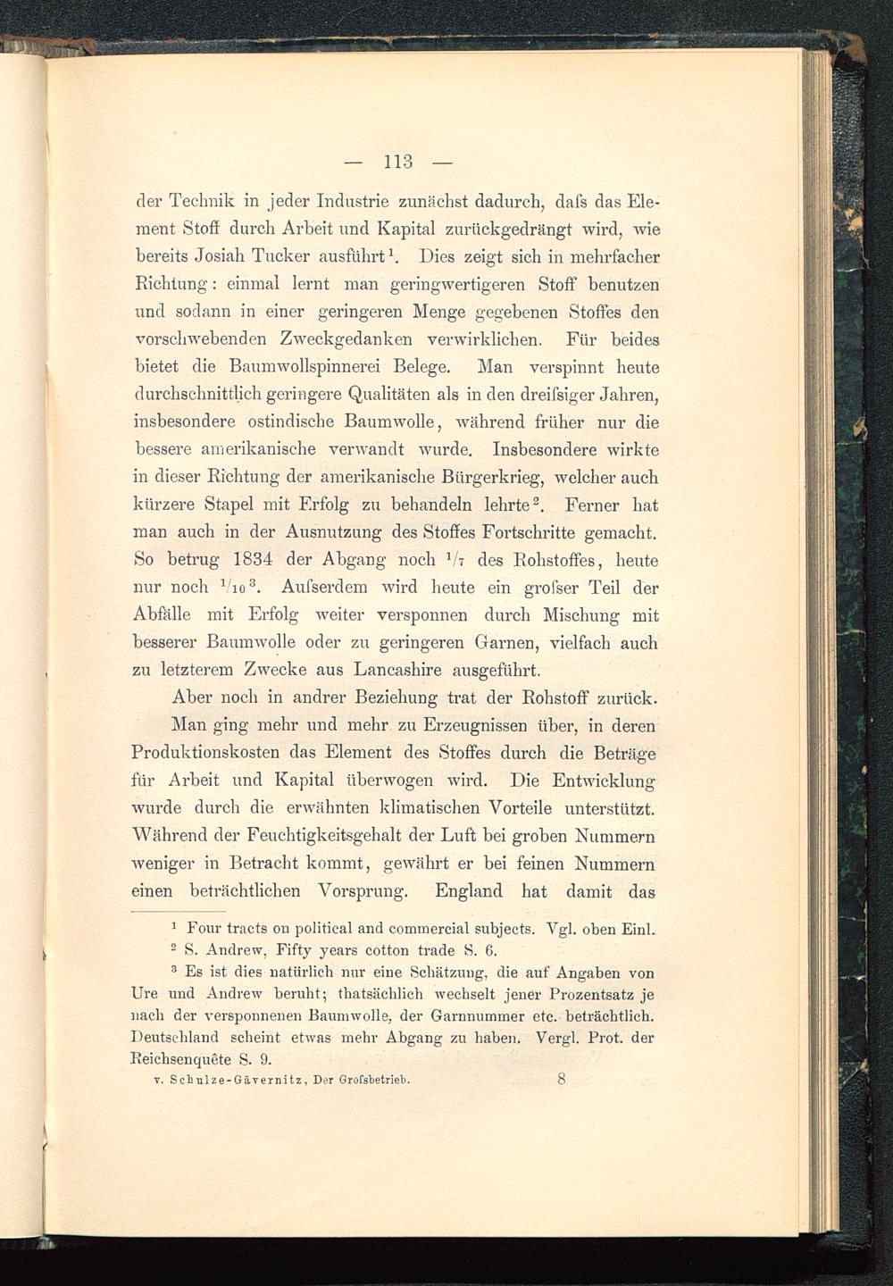 3 Es ist dies natürlich nur eine Schätzung, die auf Angaben vonUre und Andrew beruht; thatsächlich wechselt jener Prozentsatz jenach der versponnenen Baumwolle, der Garnnummer etc. beträchtlich.Deutsehland scheint etwas mehr Abgang zu haben. Vergl. Prot, derReichsenquete S. 9.