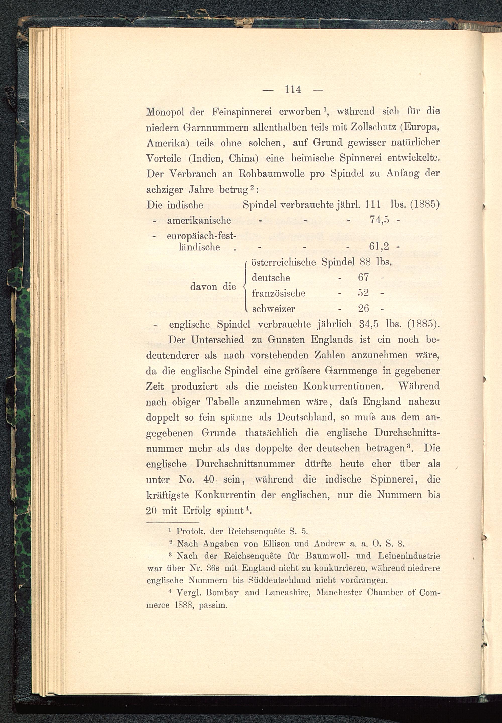 3 Nach der Reichsenquete für Baumwoll- und Leinenindustriewar über Nr. 36s mit England nicht zu konkurrieren, während niedrereenglische Nummern bis Süddeutschland nicht vordrangen.