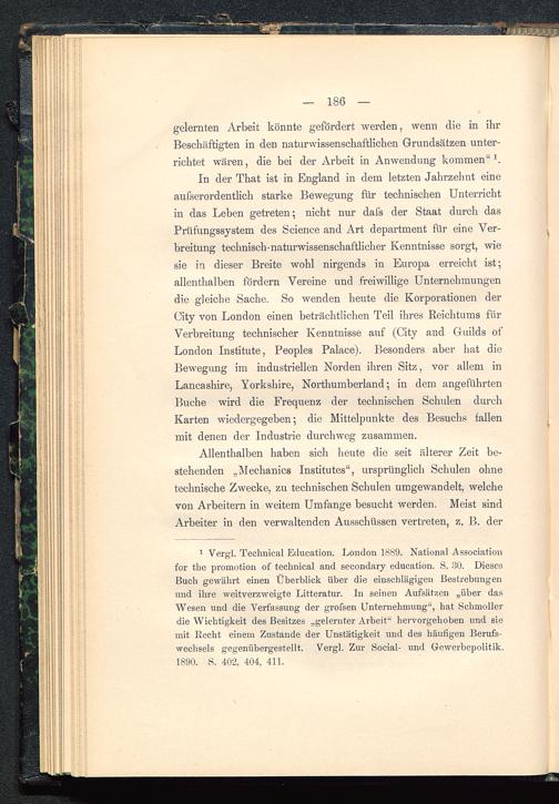 1 Vergl. Technical Education. London 1889. National Associationfor the promotion of technical and secondary education. S. 30. DiesesBuch gewährt einen Überblick über die einschlägigen Bestrebungenund ihre weitverzweigte Litteratur. In seinen Aufsätzen „über dasWesen und die Verfassung der grofsen Unternehmung", hat Schmollerdie Wichtigkeit des Besitzes „gelernter Arbeit" hervorgehoben und siemit Recht einem Zustande der Unstätigkeit und des häufigen Berufs-wechsels gegenübergestellt. Vergl. Zur Social- und Gewerbepolitik.1890. S. 402, 404, 411.