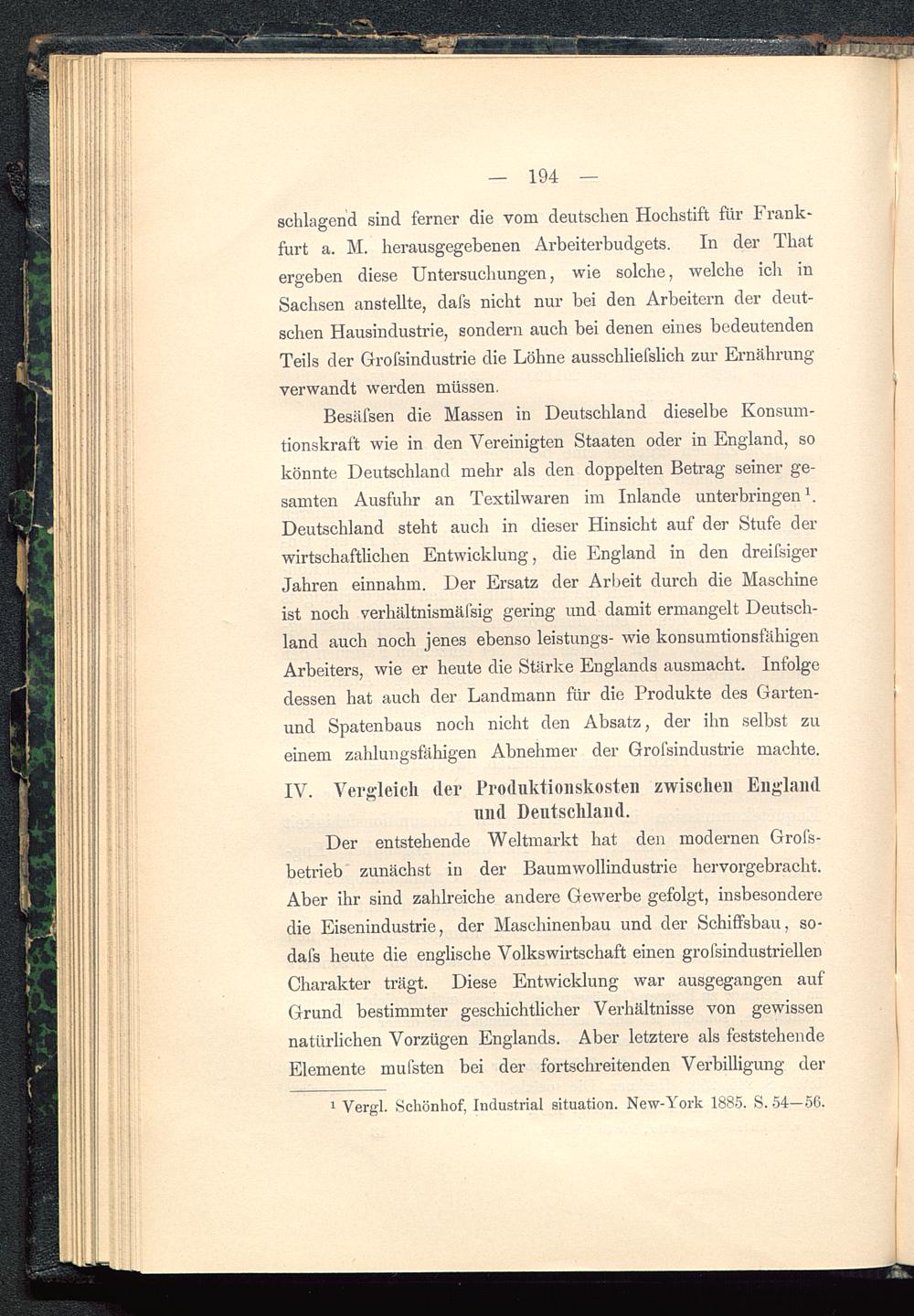 IV. Vergleich der Produktionskosten zwischen England und Deutschland .
