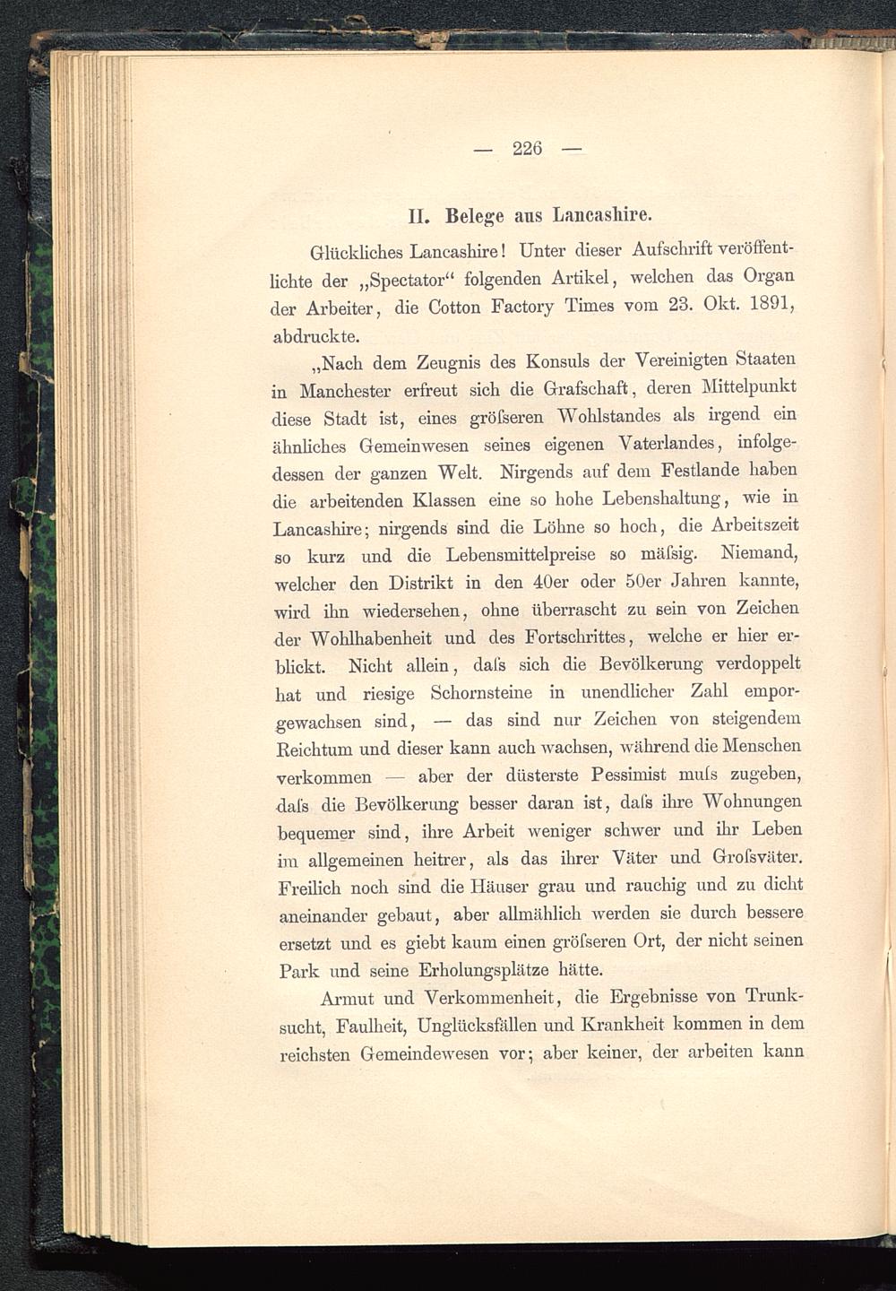 Glückliches Lancashire ! Unter dieser Aufschrift veröffent-lichte der „Spectator" folgenden Artikel, welchen das Organder Arbeiter, die Cotton Factory Times vom 23. Okt. 1891,abdruckte.