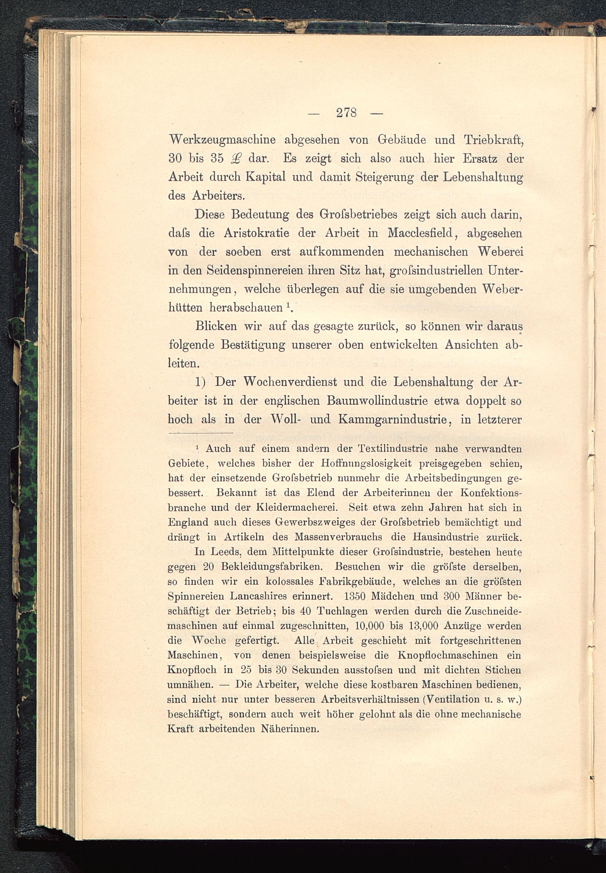 Diese Bedeutung des Grofsbetriebes zeigt sich auch darin,dafs die Aristokratie der Arbeit in Macclesfield , abgesehenvon der soeben erst aufkommenden mechanischen Webereiin den Seidenspinnereien ihren Sitz hat, grofsindustriellen Unter-nehmungen, welche überlegen auf die sie umgebenden Weber-hütten herabschauen 1 .