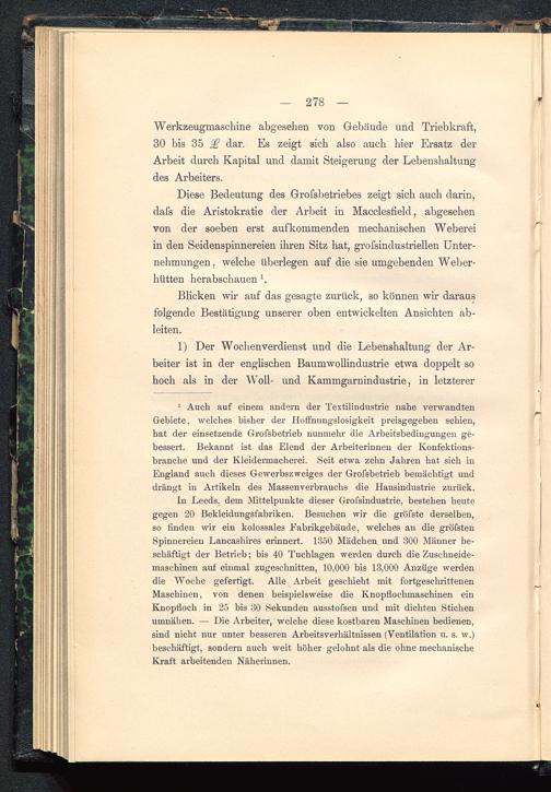 1) Der Wochenverdienst und die Lebenshaltung der Ar-beiter ist in der englischen Baumwollindustrie etwa doppelt sohoch als in der Woll- und Kammgarnindustrie, in letzterer