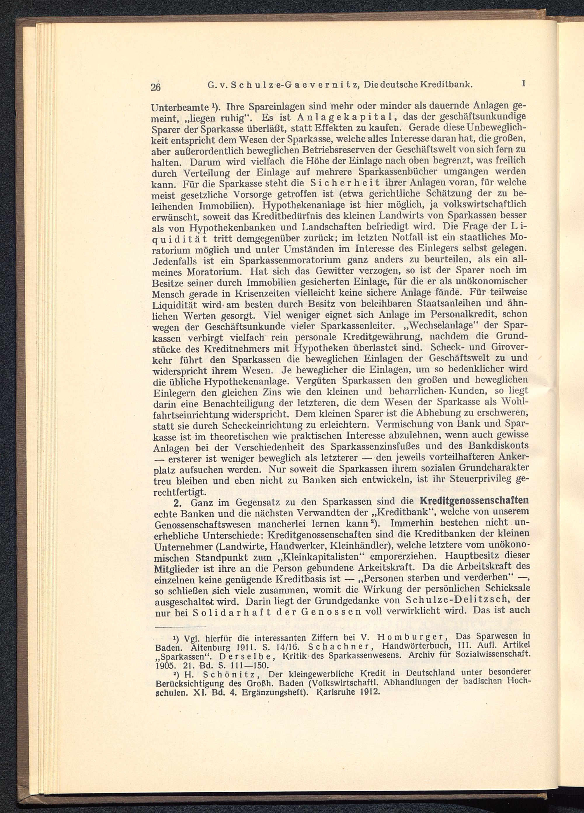 26 G. v. S c h u 1 z e-G aevernitz, Die deutsche Kreditbank. I