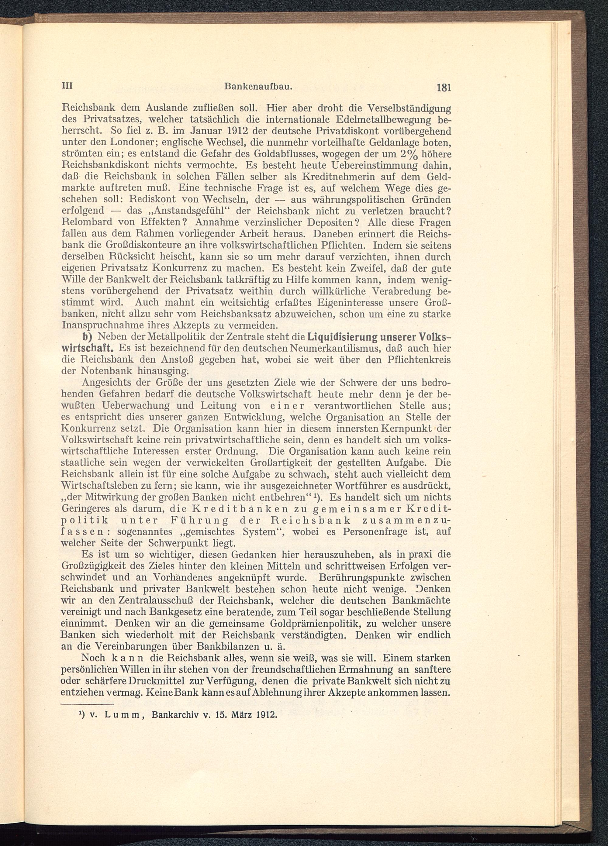 *) v. Lumm, Bankarchiv v. 15. März 1912.