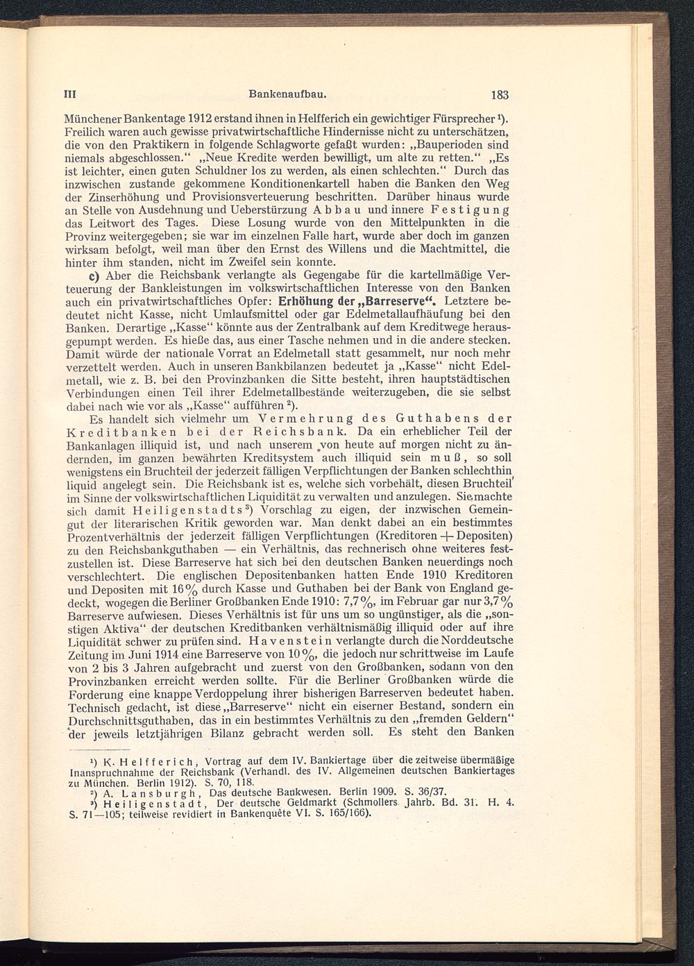 !) K- Helfferich , Vortrag auf dem IV. Bankiertage über die zeitweise übermäßigeInanspruchnahme der Reichsbank (Verhandl. des IV. Allgemeinen deutschen Bankiertageszu München. Berlin 1912). S. 70, 118.