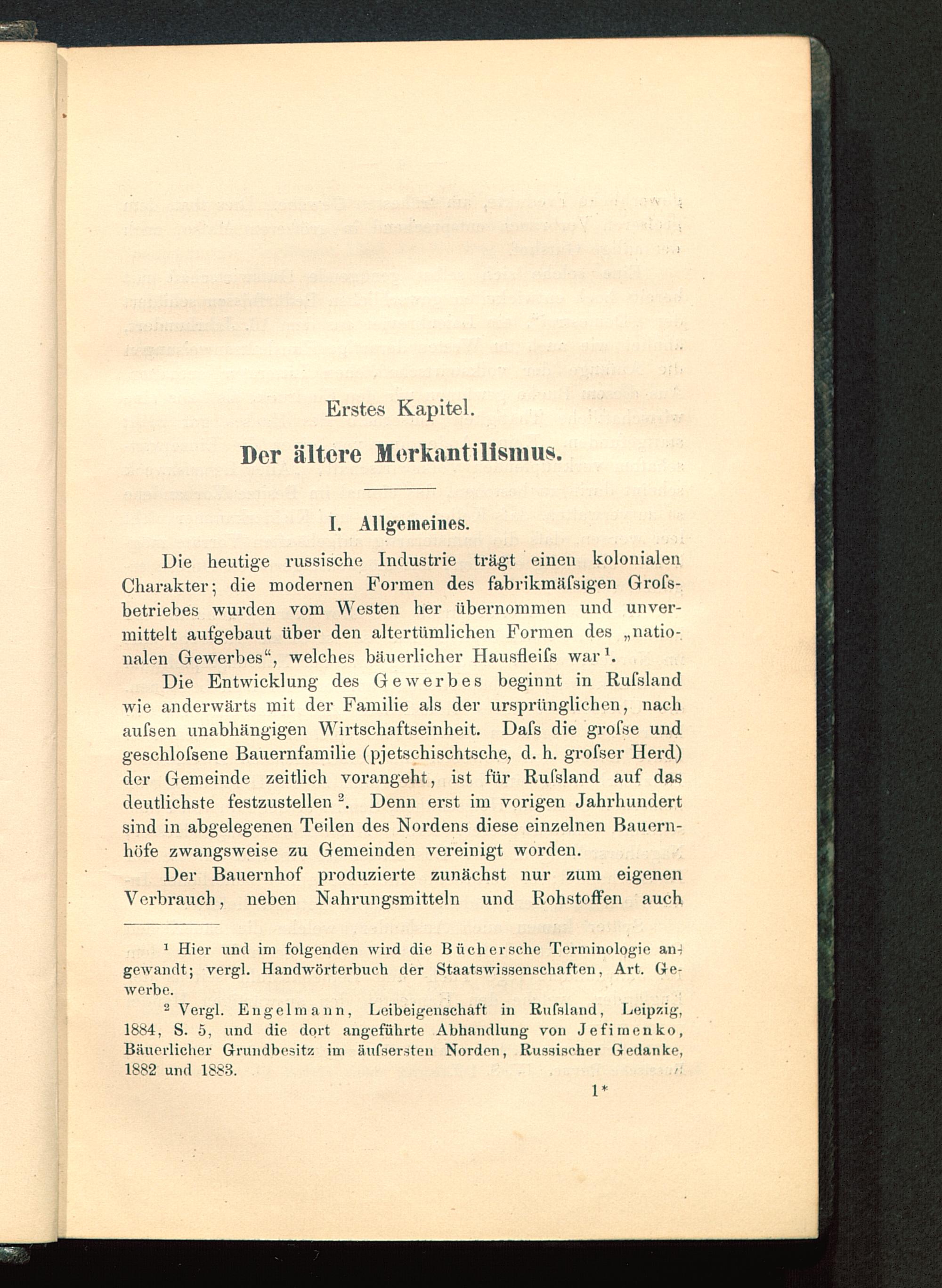 Die heutige russische Industrie trägt einen kolonialenCharakter; die modernen Formen des fabrikmäfsigen Grofs-betriebes wurden vom Westen her übernommen und unver-mittelt aufgebaut über den altertümlichen Formen des „natio-nalen Gewerbes", welches bäuerlicher Hausfleifs war 1 .